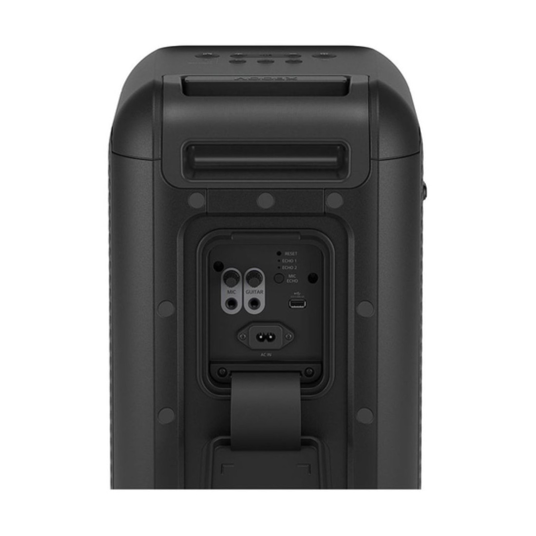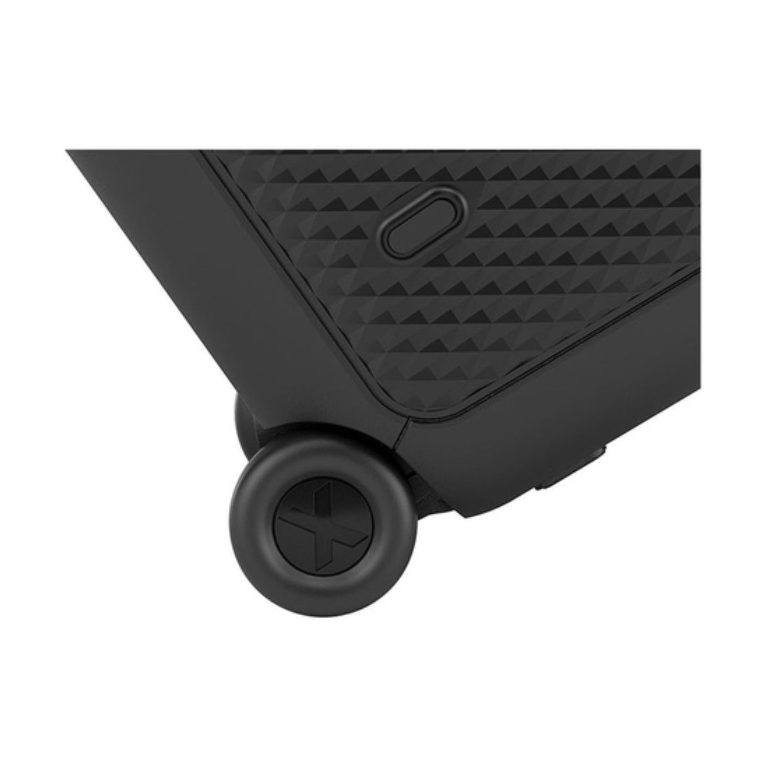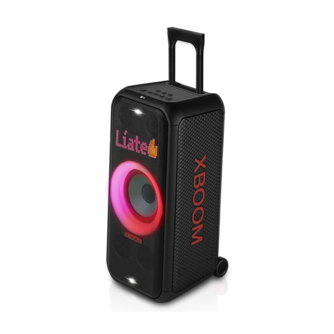 El LG DXL7T no solo suena bien, también está preparado para resistir. Su certificación IPX4 lo protege contra salpicaduras, lo que lo convierte en una opción segura para exteriores. Además, su estructura incorpora asa de transporte y ruedas, facilitando el desplazamiento sin esfuerzo. La iluminación LED en colores azul, verde y rojo añade un toque visual que transforma cualquier ambiente.