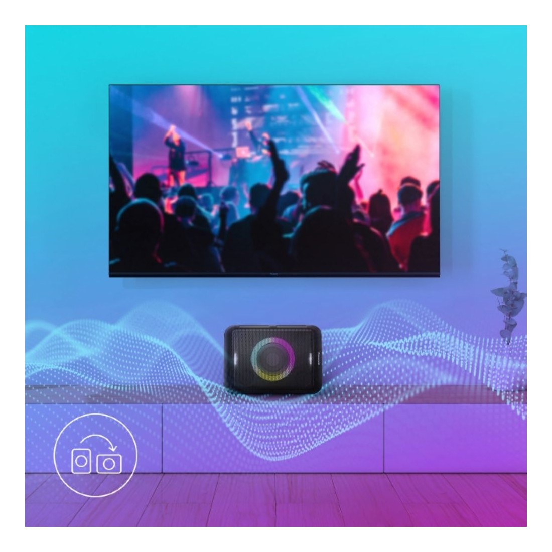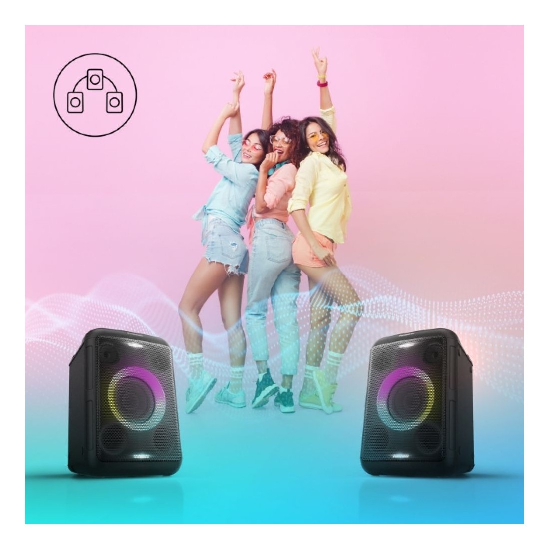 Con 75 W de potencia y una batería de hasta 9 horas, el sistema BMAX5 es perfecto para fiestas, reuniones y momentos al aire libre. Su diseño compacto asegura un sonido impactante en cualquier lugar.