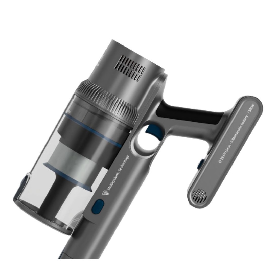 Equipado con una batería de Li-ion extraíble de 2000mAh, este aspirador ofrece hasta 80 minutos de autonomía en modo ECO, permitiendo limpiar tu hogar sin interrupciones. La batería se recarga en solo 4 horas, asegurando un tiempo de uso prolongado y eficiente.
