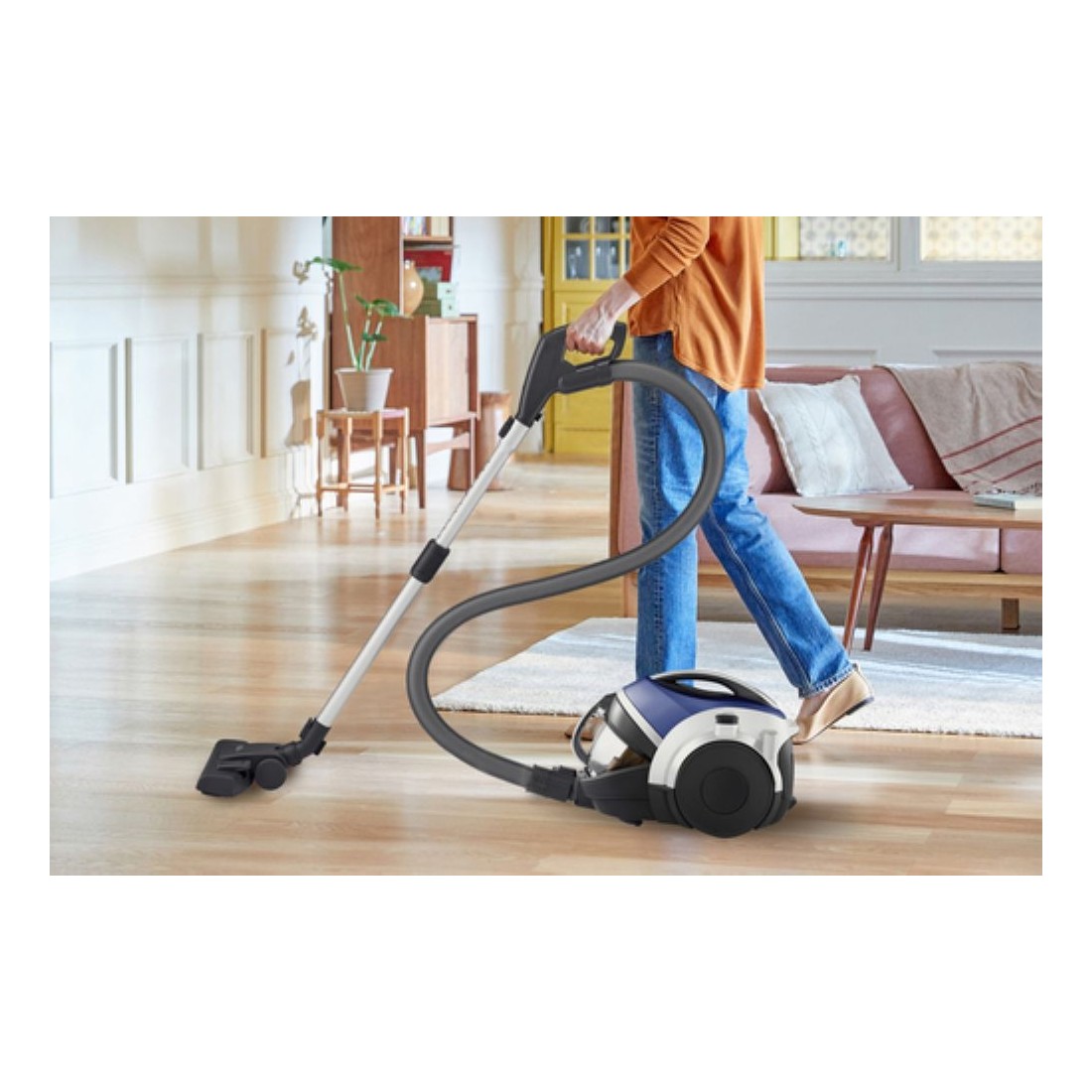 Esta aspiradora sin bolsa destaca por su potencia máxima de 650 W, perfecta para eliminar polvo y suciedad en diferentes superficies del hogar. Su sistema de filtración en tres etapas ayuda a mantener el aire más limpio, algo esencial para quienes buscan un ambiente saludable. Es ideal para suelos duros, alfombras y zonas delicadas, ofreciendo resultados impecables sin esfuerzo adicional.