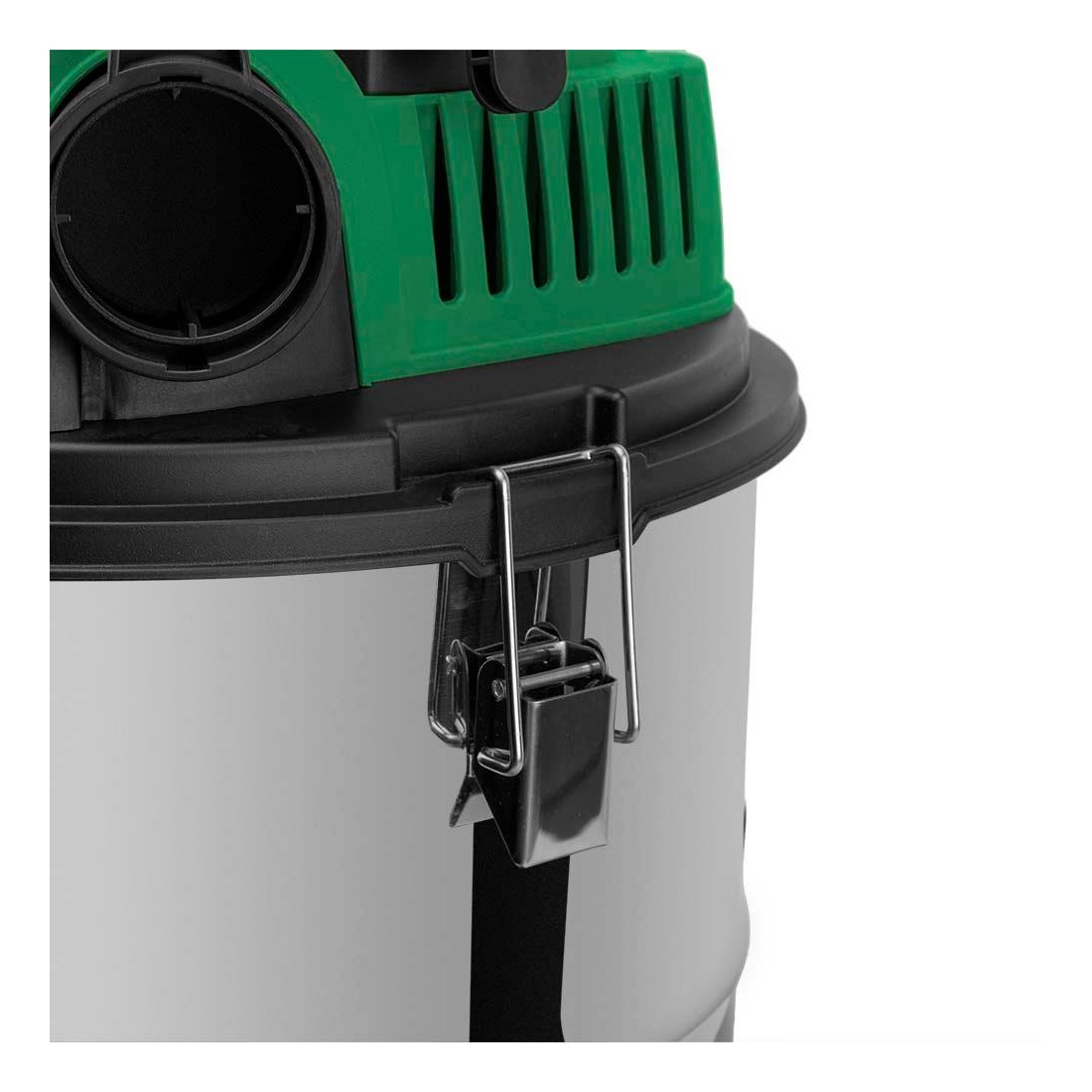 Su depósito metálico de 20 litros es una muestra más de su compromiso con la calidad. Con cierres tensores de acero inoxidable, no solo garantiza una resistencia superior, sino que también asegura una limpieza rápida y sencilla.