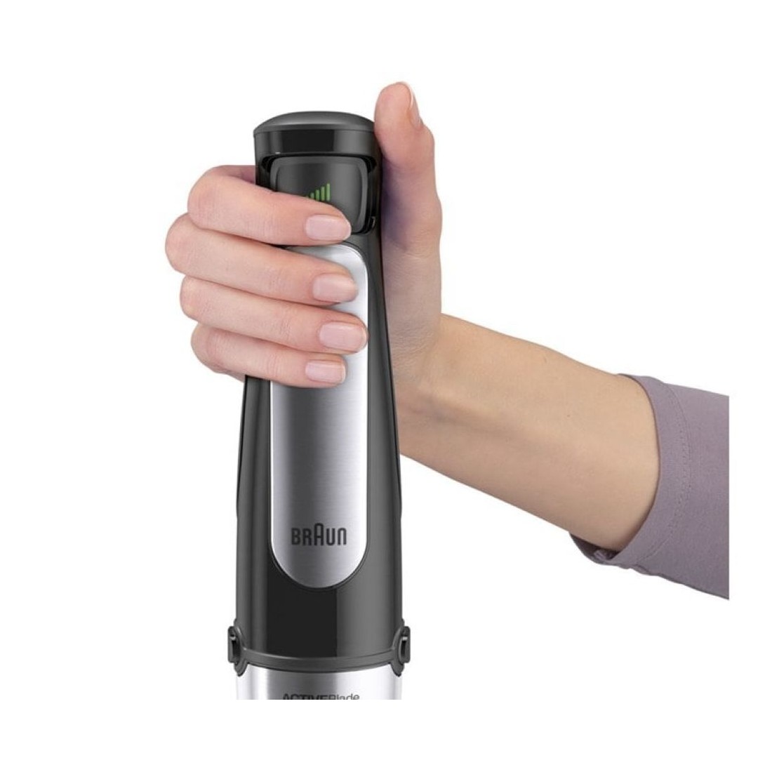 Uno de los elementos que más llama la atención es la tecnología ActiveBlade. A diferencia de las batidoras tradicionales, aquí las cuchillas no solo giran: también se desplazan hacia arriba y abajo mientras cortan. Este movimiento extra facilita romper ingredientes compactos o fibrosos sin necesidad de aplicar tanta fuerza con la mano. Para el usuario, esto se traduce en menos cansancio, mezclas más finas y la sensación de que el aparato avanza sin quedarse atascado. Es especialmente útil en recetas como cremas espesas, hummus o purés con verduras duras, donde normalmente habría que insistir más.