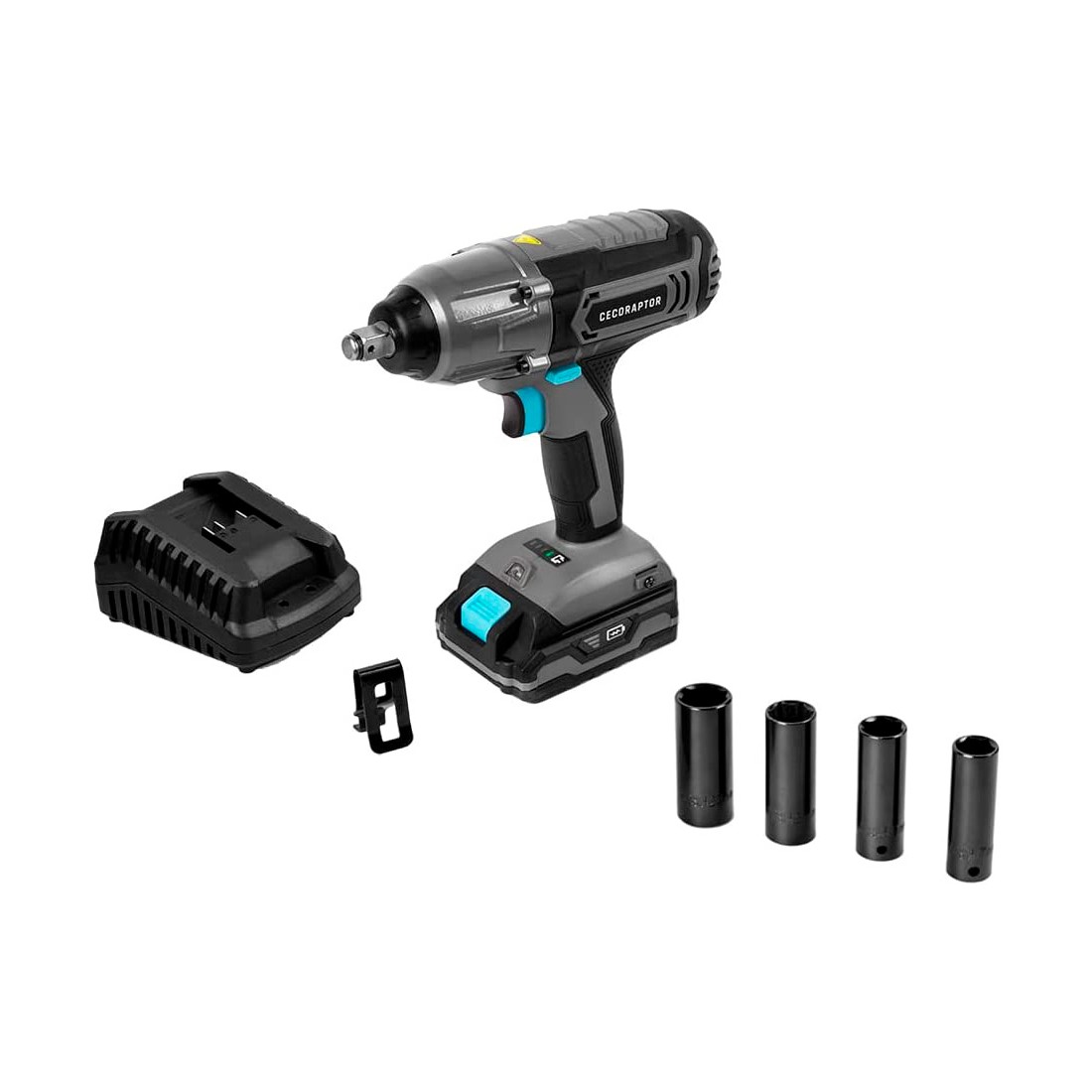 Accesorios:4 x Llaves de vaso de impacto: 17mm / 19mm / 21mm / 23 mm- 1 x Pinza para cinturón