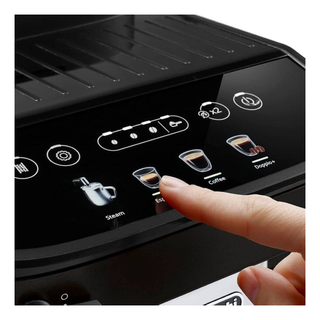 Esta máquina de café espresso en color negro combina estilo y tecnología para ofrecerte una experiencia única. Su diseño compacto se adapta a cualquier cocina, mientras que la pantalla táctil con iconos en color facilita la preparación de tus bebidas favoritas. Con solo pulsar un botón, podrás disfrutar de recetas como espresso, cappuccino o incluso Doppio+, siempre con la máxima calidad.
