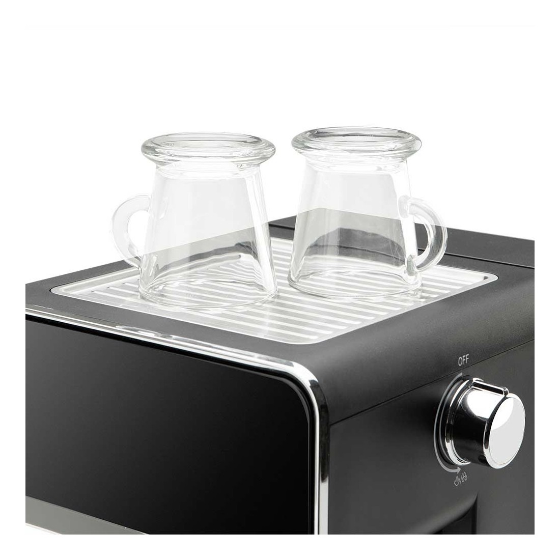 Incluye vaporizador orientable de acero inoxidable para espumar leche y preparar cappuccinos o lattes, además de emitir agua caliente para infusiones. La bandeja superior calientatazas mantiene tus tazas a la temperatura adecuada, evitando que el café pierda calor al servirlo.