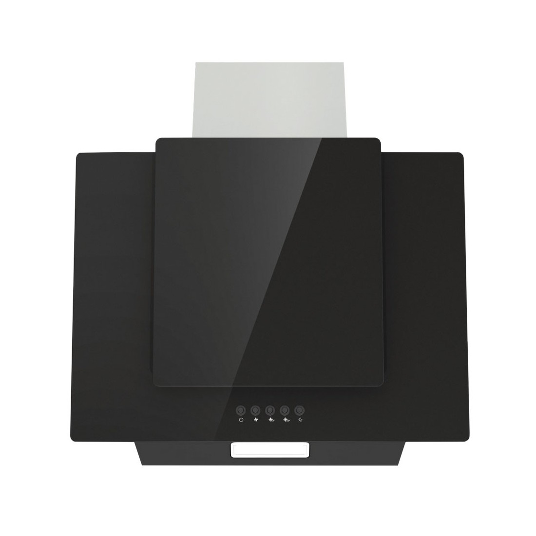 Campana Decorativa con diseño inclinado con capacidad de extracción máxima de 650 m³/h y un nivel sonoro máximo de 66 dB. Color negro y 60 cm de ancho.