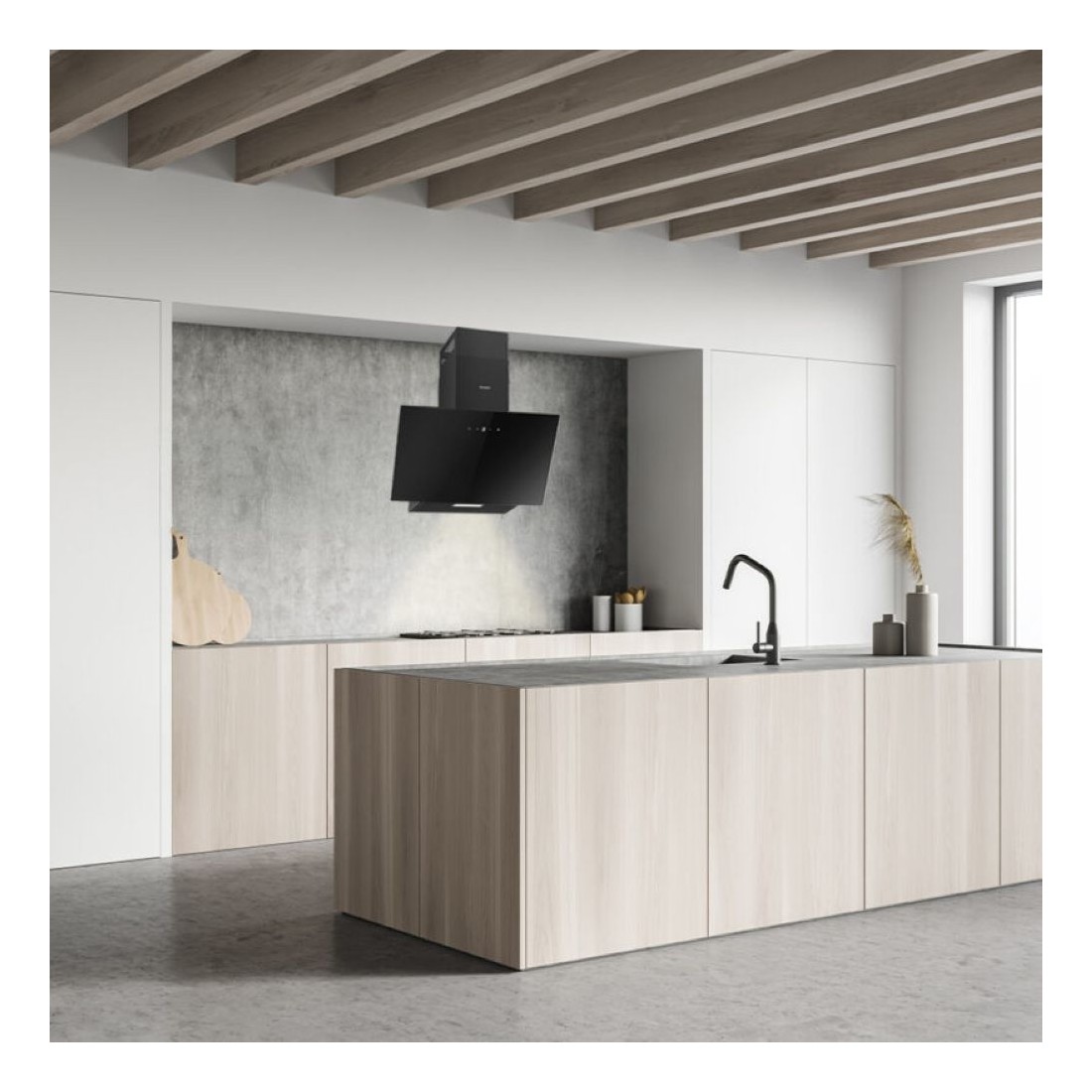 Esta campana inclinada en cristal negro combina estética moderna con un rendimiento excepcional. Con eficiencia energética A++, reduce el consumo eléctrico sin perder potencia. Su diseño sofisticado aporta un toque premium a cualquier cocina, mientras que la iluminación LED crea un ambiente agradable y funcional.