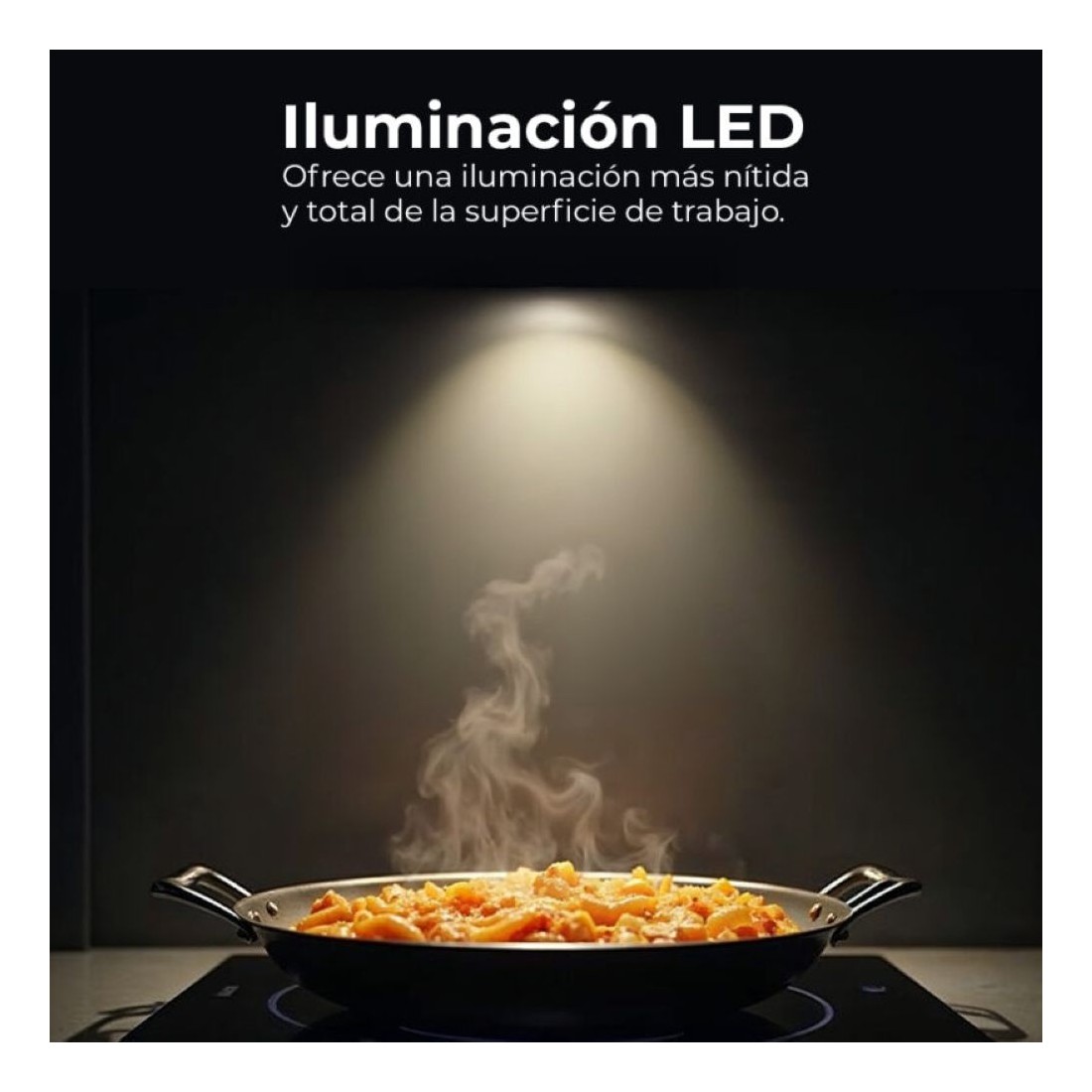 La luz LED integrada mejora la visibilidad sobre la placa y consume menos energía que las bombillas convencionales. Además, los filtros de aluminio son aptos para lavavajillas, lo que facilita la limpieza y prolonga su vida útil. También admite filtros de carbón para instalación en recirculación.
