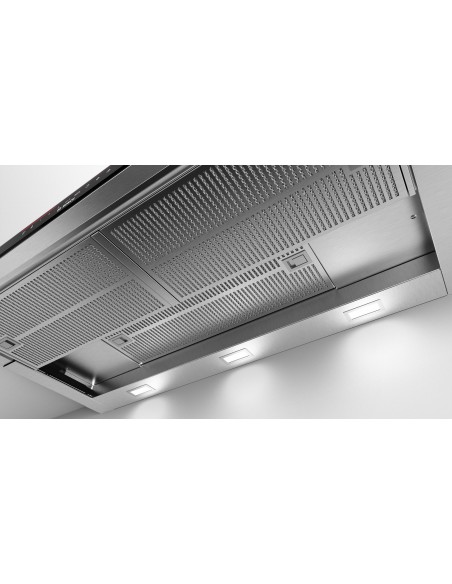Equipada con filtros de acero inoxidable lavables, esta campana retiene el 85% de la grasa del aire de la cocina, mejorando la calidad del aire y facilitando la limpieza.