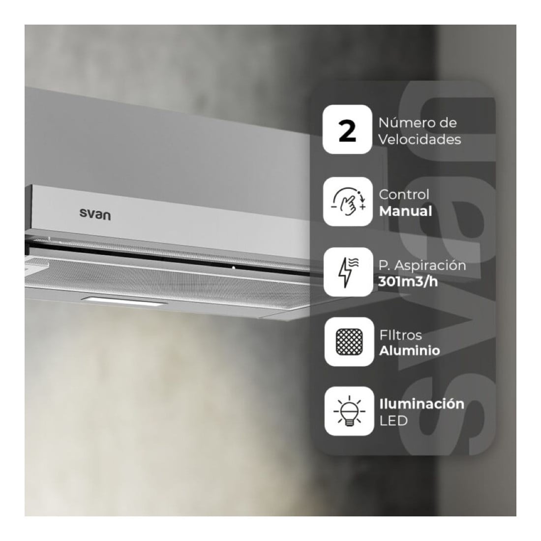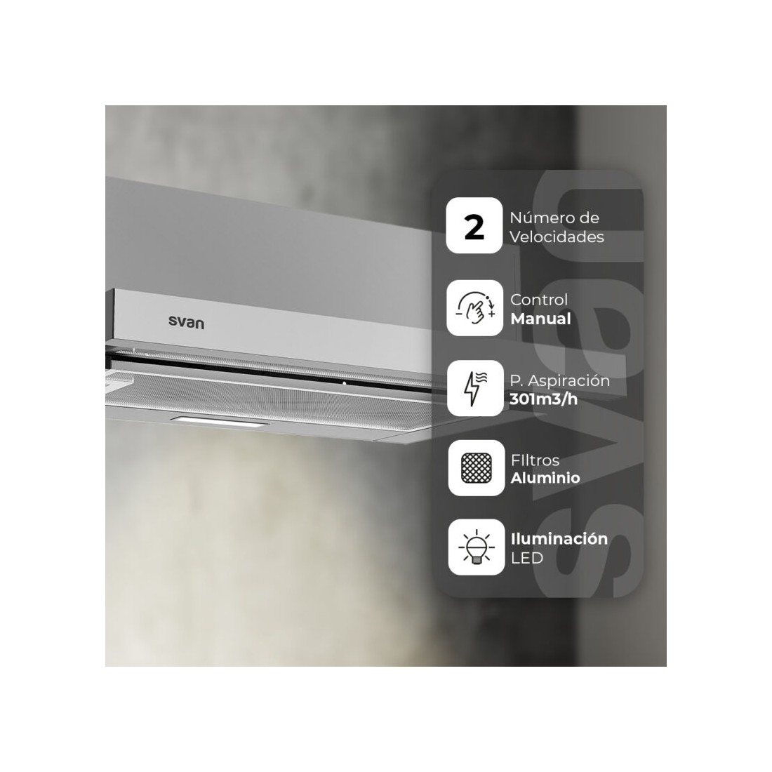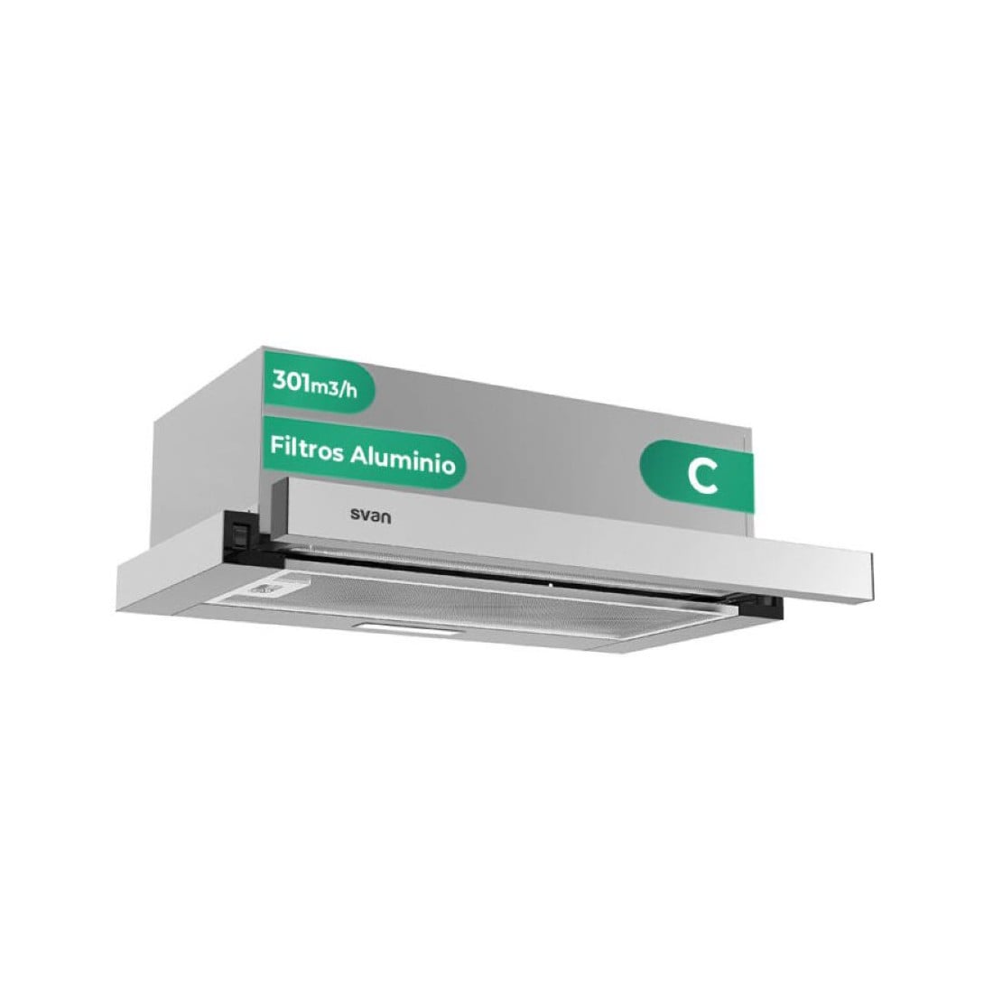Campana Telescópica - SVAN SCPE602AX, 59,5 cm, Inox, 301 m³/h