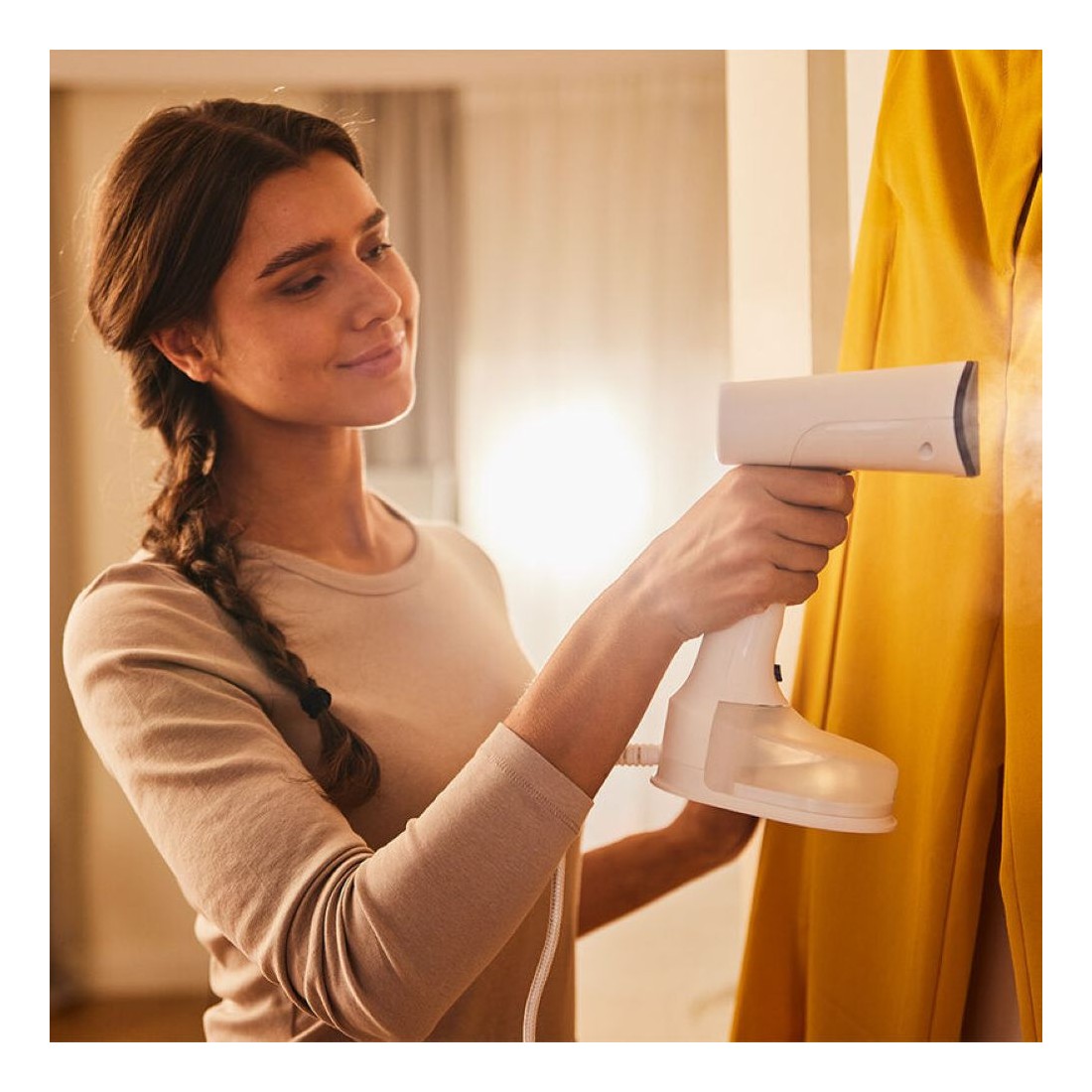 Este vaporizador manual combina 1200 W de potencia con tecnología iCare, diseñada para proteger tus prendas frente a quemaduras. Su diseño compacto y ligero lo convierte en la herramienta perfecta para el día a día.