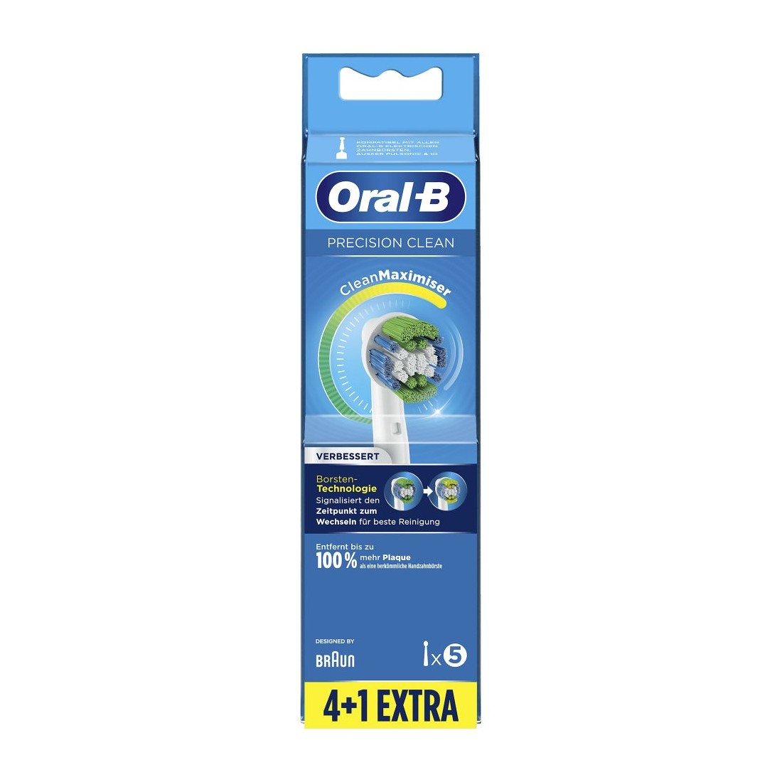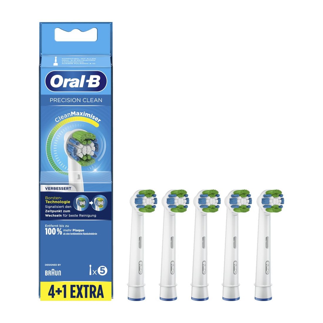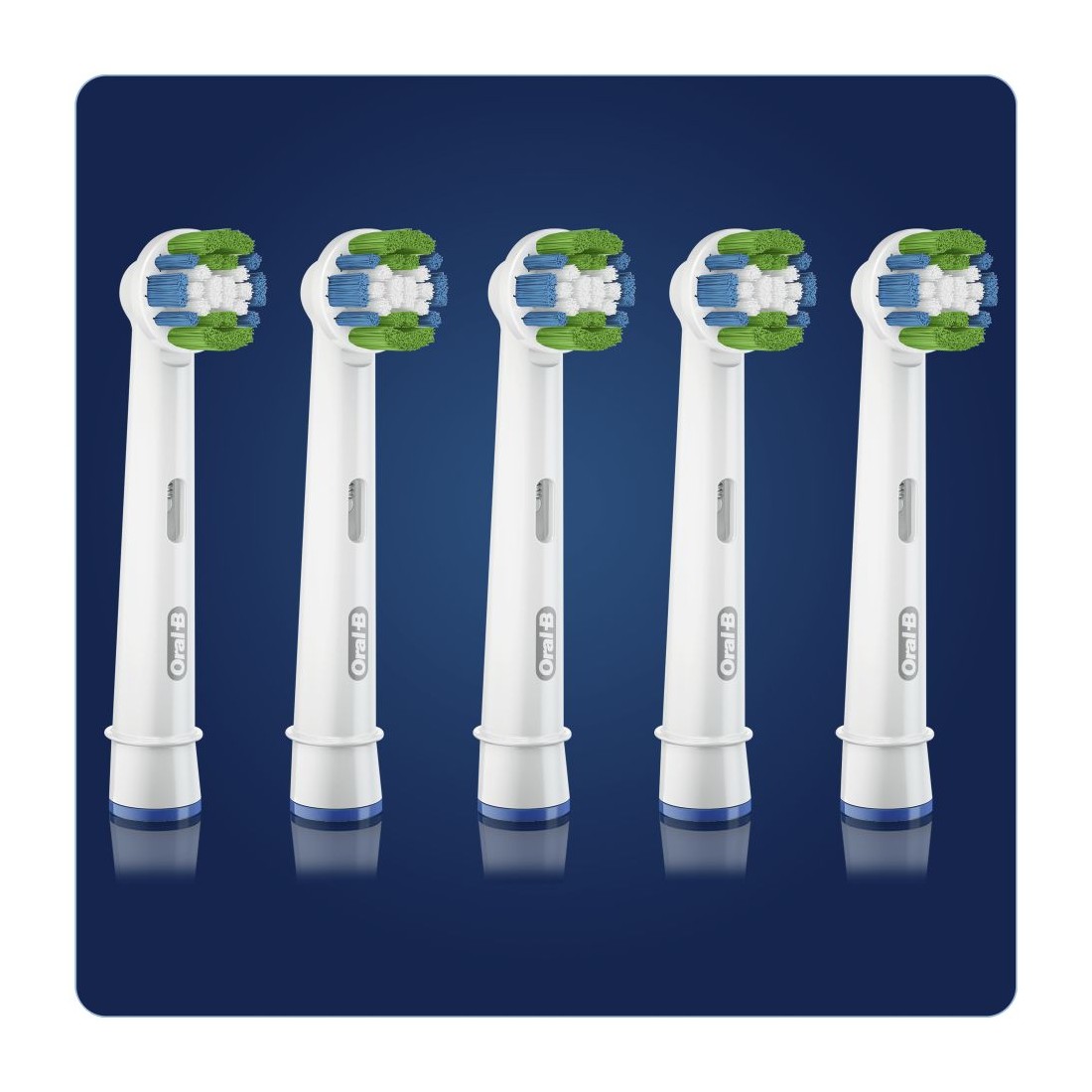 Este pack incluye cinco cabezales en colores azul y blanco, con cerdas que eliminan la placa de forma eficaz. Su diseño ergonómico permite llegar a zonas difíciles, ofreciendo una limpieza completa.