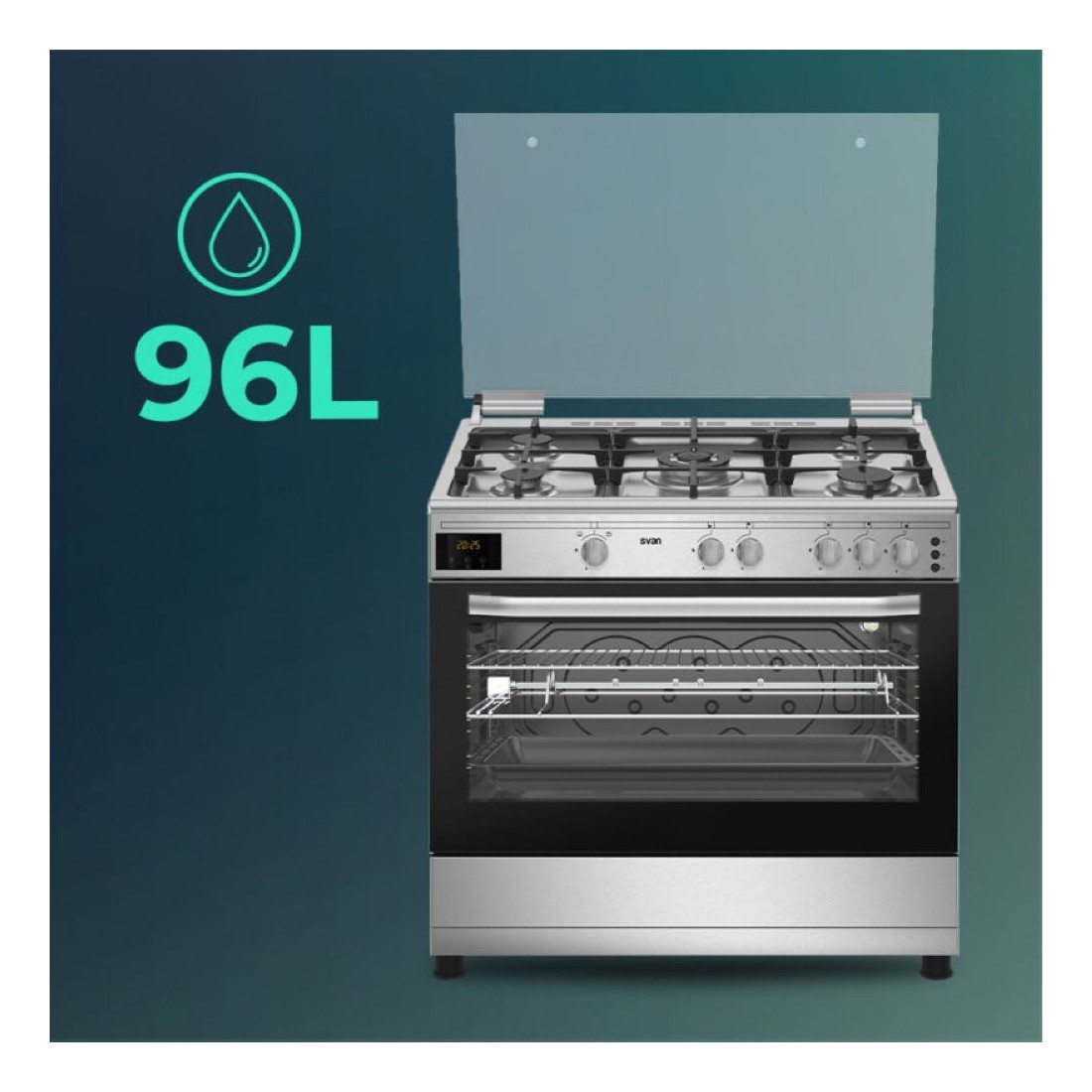 Cocina Gas SVAN Butano - SKGW5902X, 5 Fuegos, Inox, 90 cm, Wok