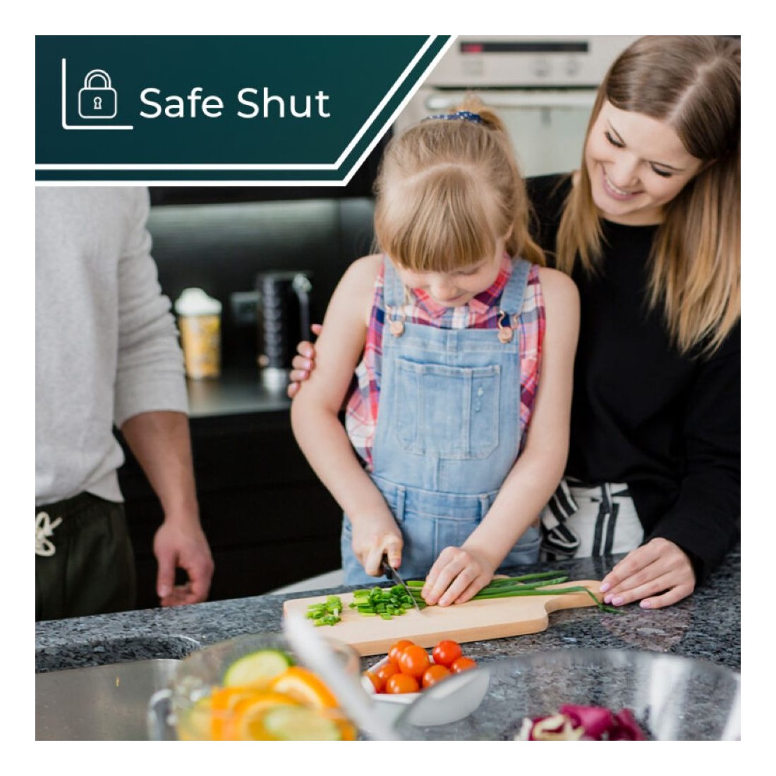 Este modelo incorpora el sistema FFD, que corta el gas automáticamente si detecta ausencia de llama, evitando riesgos. También dispone del sistema Safe Shut, que mantiene la tapa fija para prevenir cierres accidentales. La ignición automática y el temporizador digital hacen que cocinar sea más cómodo y seguro.