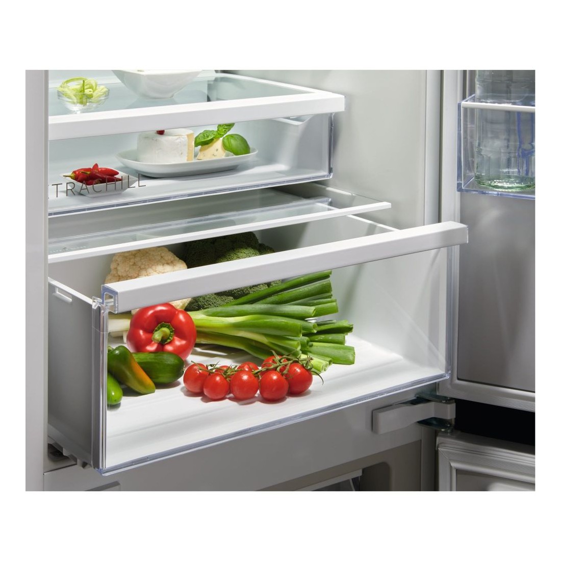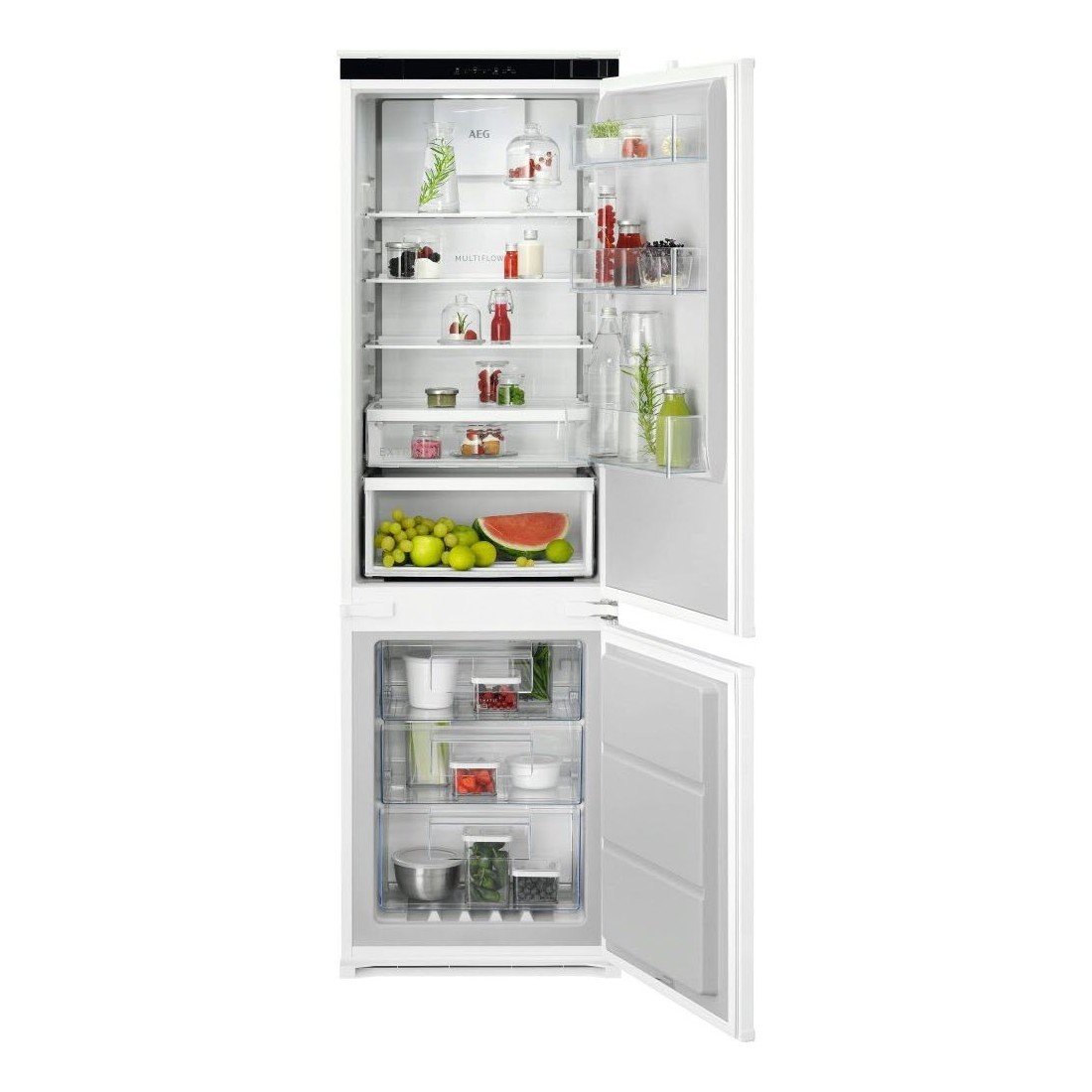Este combi integrable garantiza condiciones óptimas para cada tipo de alimento gracias a su avanzada tecnología TwinTech® No Frost, que mantiene separados los circuitos del frigorífico y el congelador. Así se consigue una mejor humedad en el frigorífico y una congelación sin escarcha, manteniendo la frescura por más tiempo.