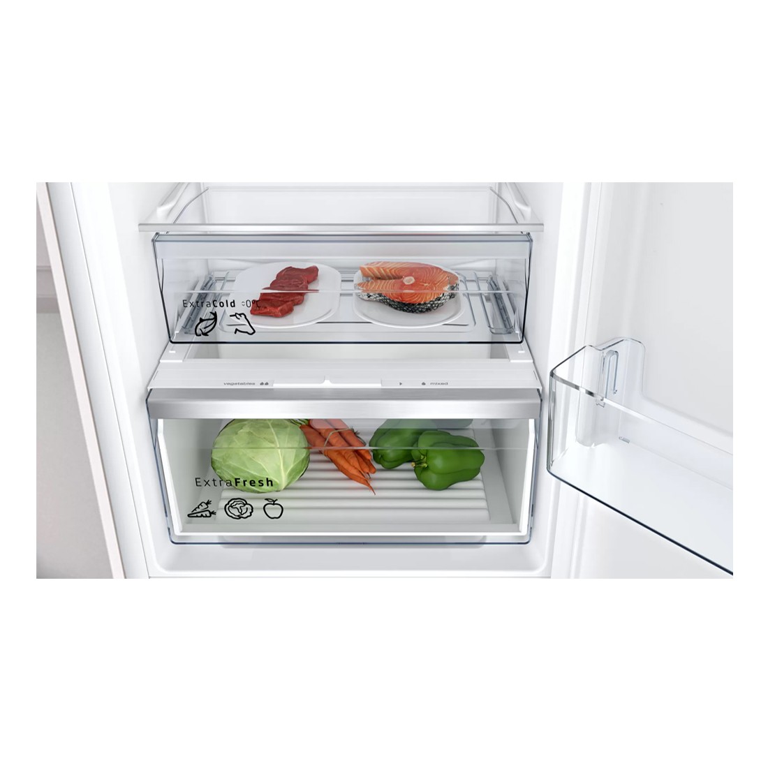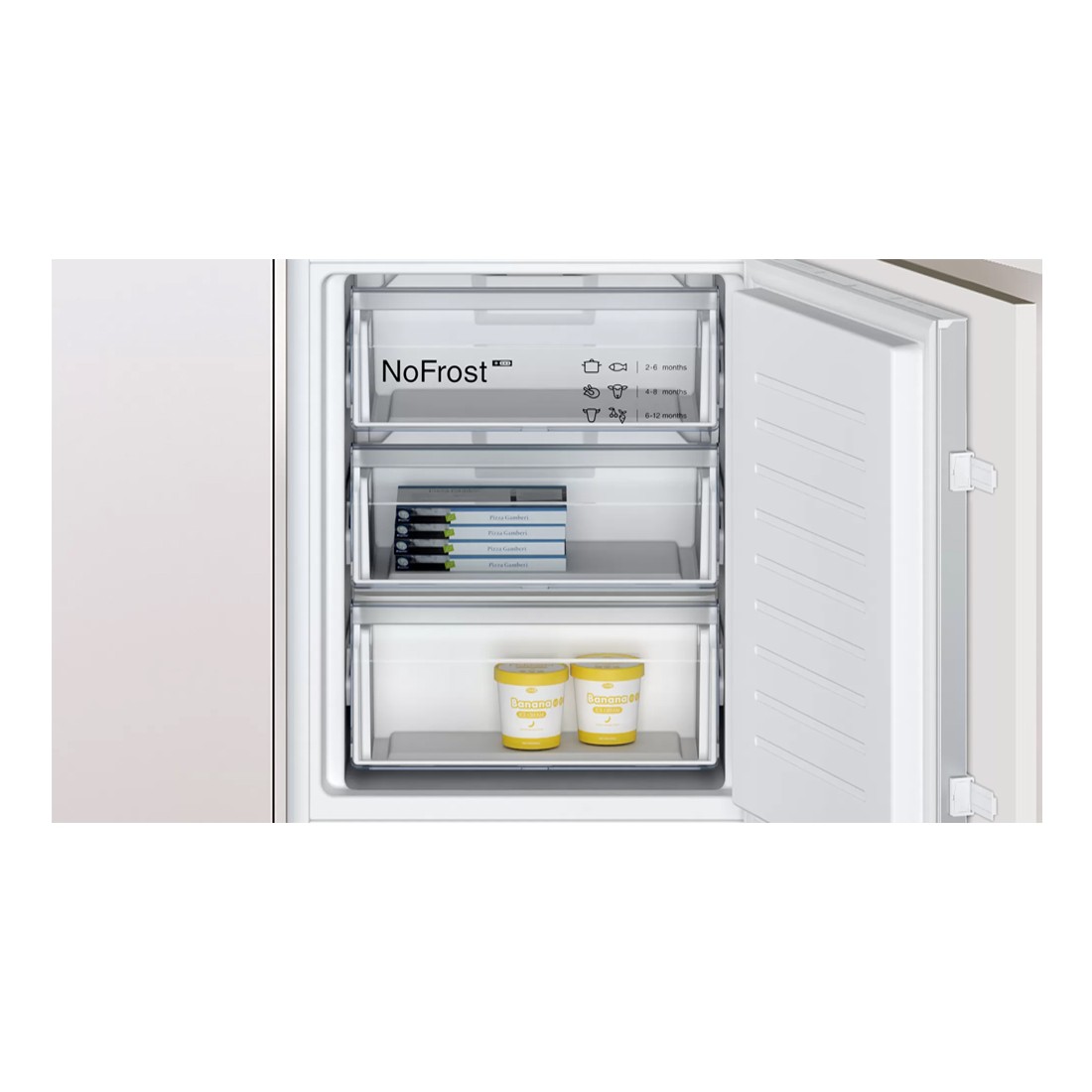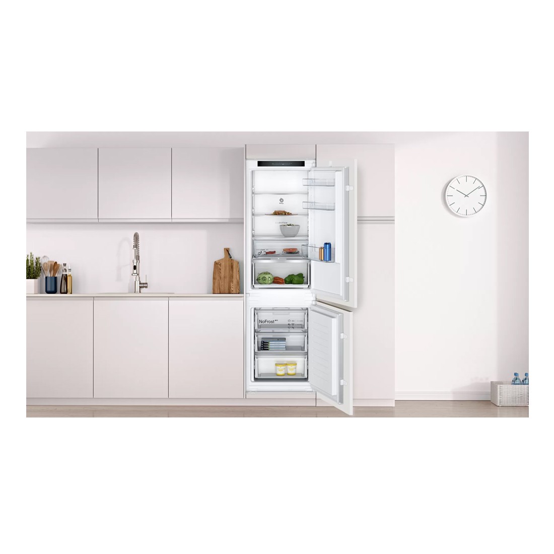 Frigorífico integrable combi silencioso con puerta deslizante y tecnología EcoAirFlow