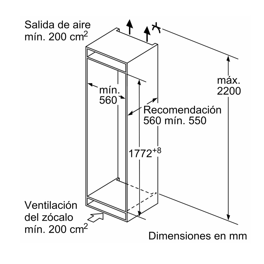 - Dimensiones de instalación: 1772 x 541 x 548 mm con un peso neto de 51.839 kg