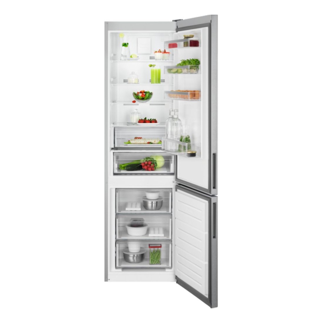 El frigorífico combi Serie 6000 TwinTech No Frost de AEG ofrece una conservación superior de los alimentos, manteniéndolos un 60% más jugosos gracias a su doble sistema de refrigeración que retiene la humedad ideal.