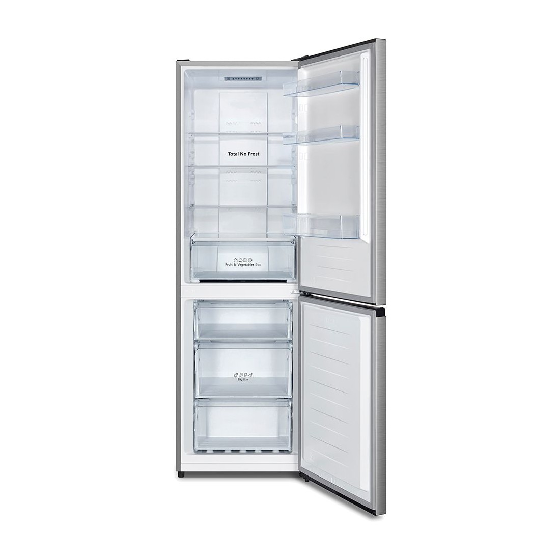 Este modelo combina un diseño moderno en acero inoxidable con un interior muy bien distribuido que facilita el día a día. Sus 304 litros totales permiten organizar la compra semanal sin agobios, y el sistema No Frost evita la aparición de escarcha tanto en la nevera como en el congelador. Esto se traduce en menos mantenimiento y en una conservación más homogénea de los alimentos, una ventaja importante frente a modelos tradicionales que requieren descongelado manual.