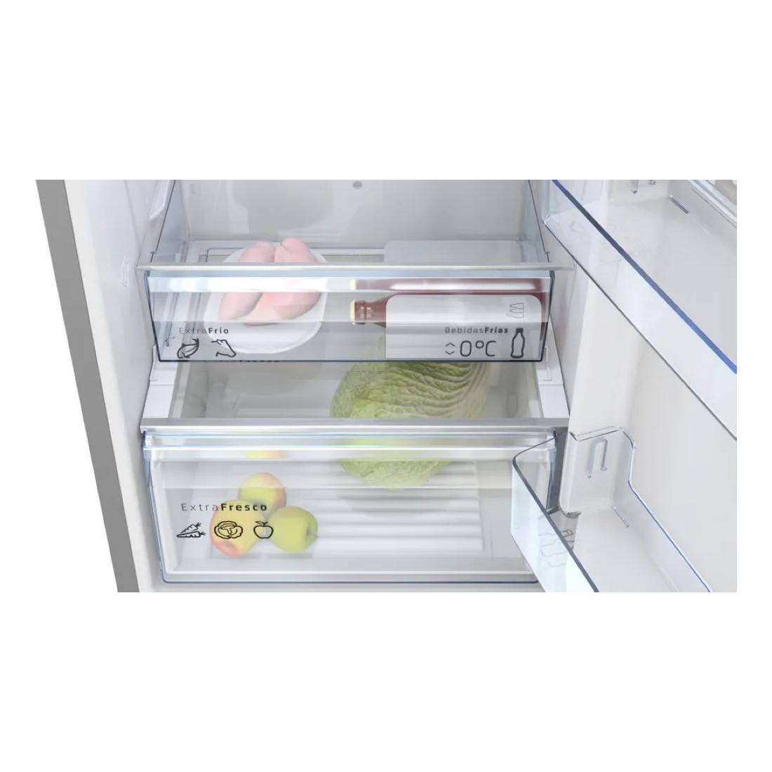 Gracias a la tecnología No Frost, olvídate de la escarcha y disfruta de alimentos frescos por más tiempo. Además, el cajón ExtraFresh mantiene frutas y verduras en condiciones ideales.