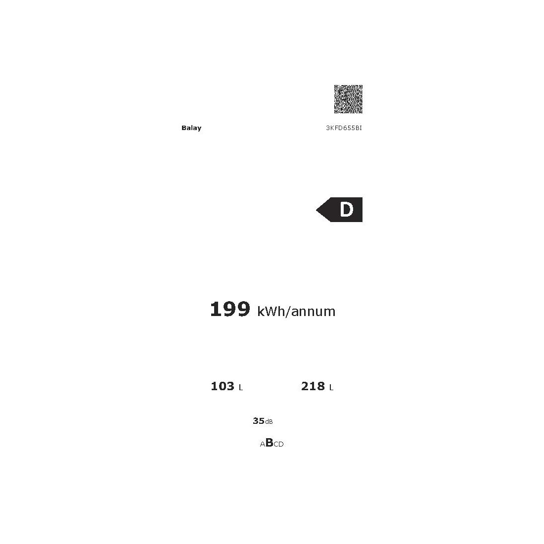 Combi Libre Instalación - BALAY 3KFD655BI, Cristal Blanco, Altura 1.86 m, Eficiencia D