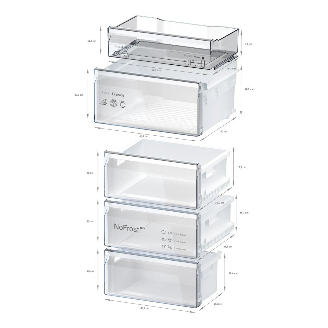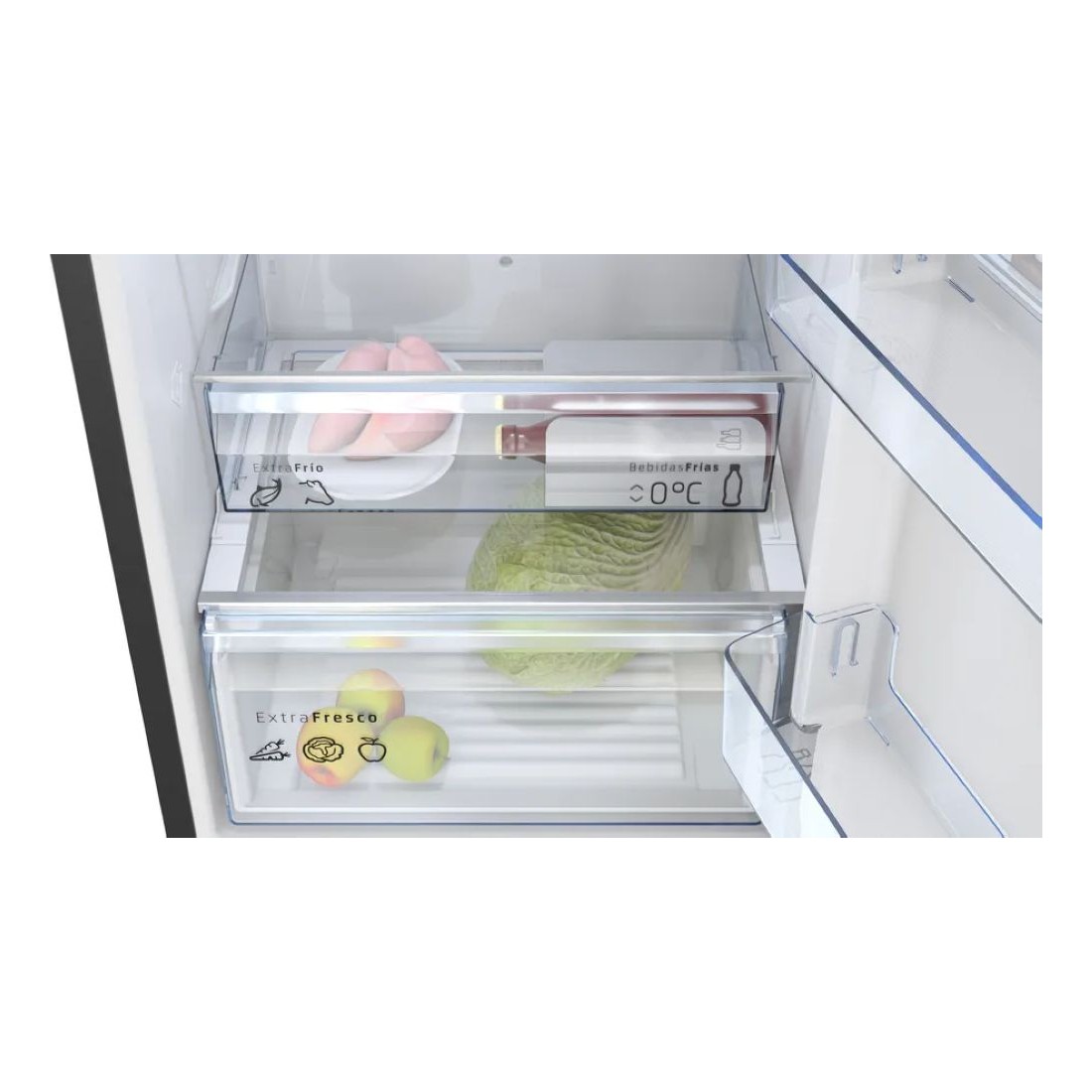 Incluye el cajón ExtraFresh para frutas y verduras, que mantiene la frescura durante más tiempo gracias a su regulador de humedad. También dispone de una zona 0°C con dos compartimentos independientes para carnes y pescados, evitando la mezcla de olores y prolongando su conservación.