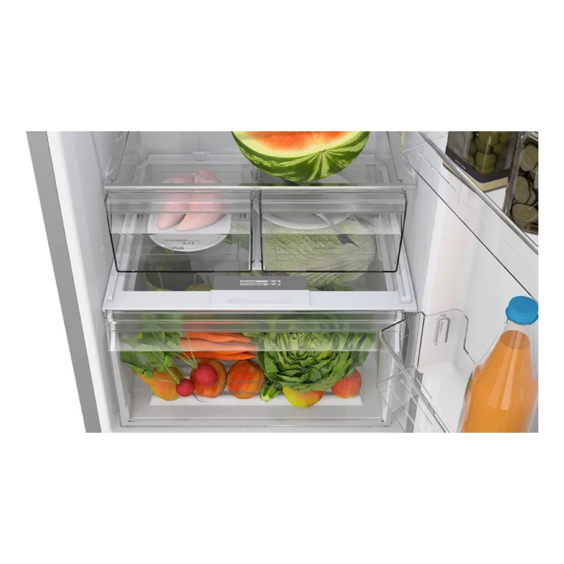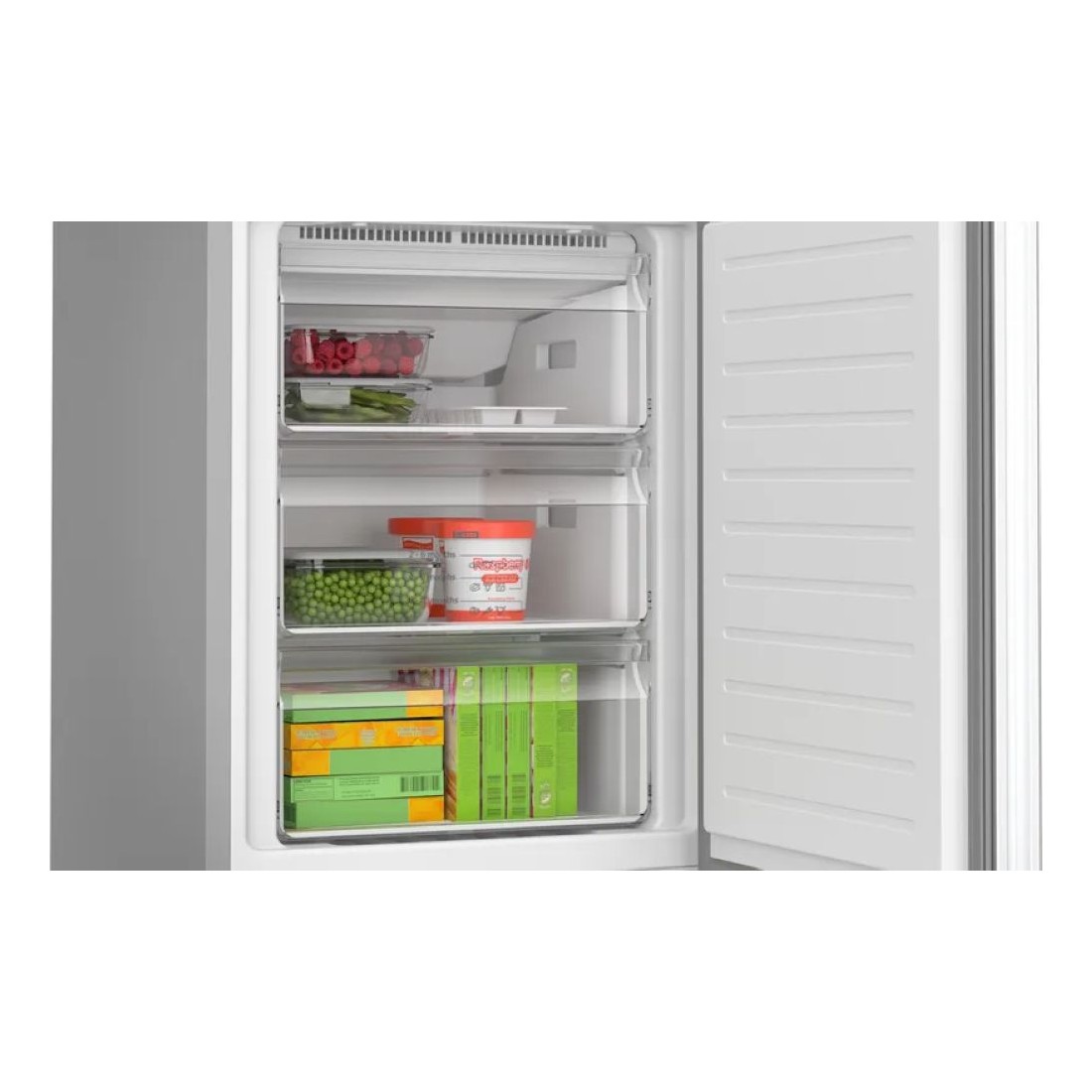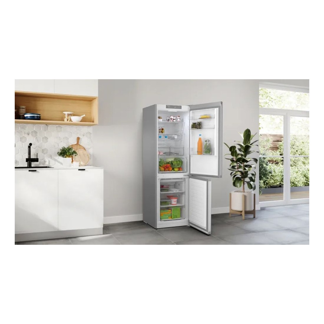 Este combi ofrece una capacidad total de 326 litros, perfecta para quienes necesitan espacio sin renunciar a la comodidad. Con 237 litros en la zona de frigorífico y 89 litros en el congelador, podrás almacenar todo tipo de alimentos de forma ordenada. Sus cajones para verduras y botellero integrado facilitan la organización diaria.