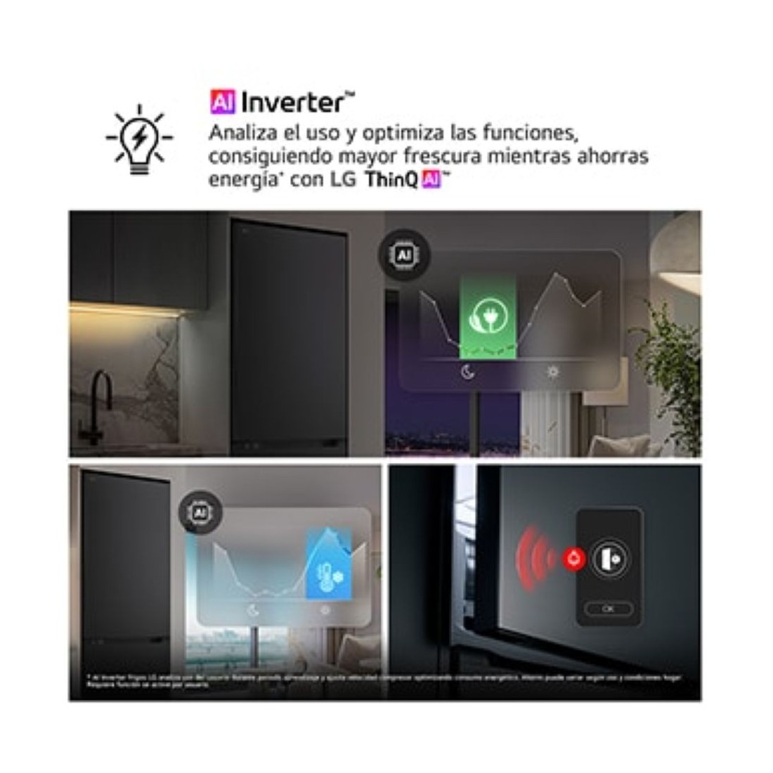 Con la conectividad Wi-Fi ThinQ™, podrás ajustar la temperatura, activar modos de ahorro y recibir alertas directamente en tu smartphone. ¿Olvidaste cerrar la puerta? La aplicación te avisará para evitar pérdidas de frío y consumo innecesario. Una solución práctica para tu día a día.