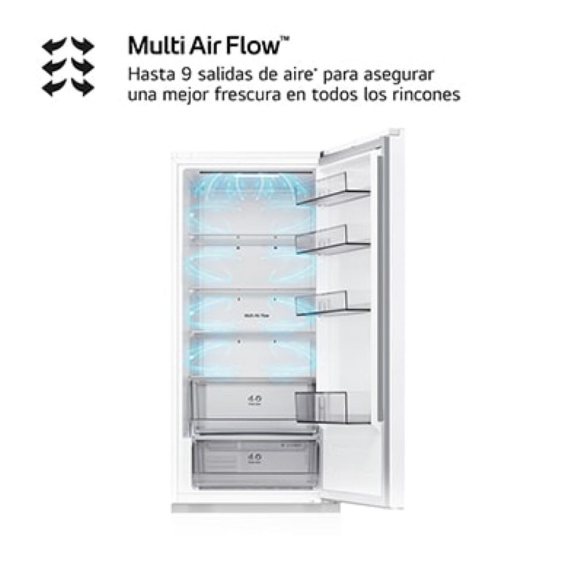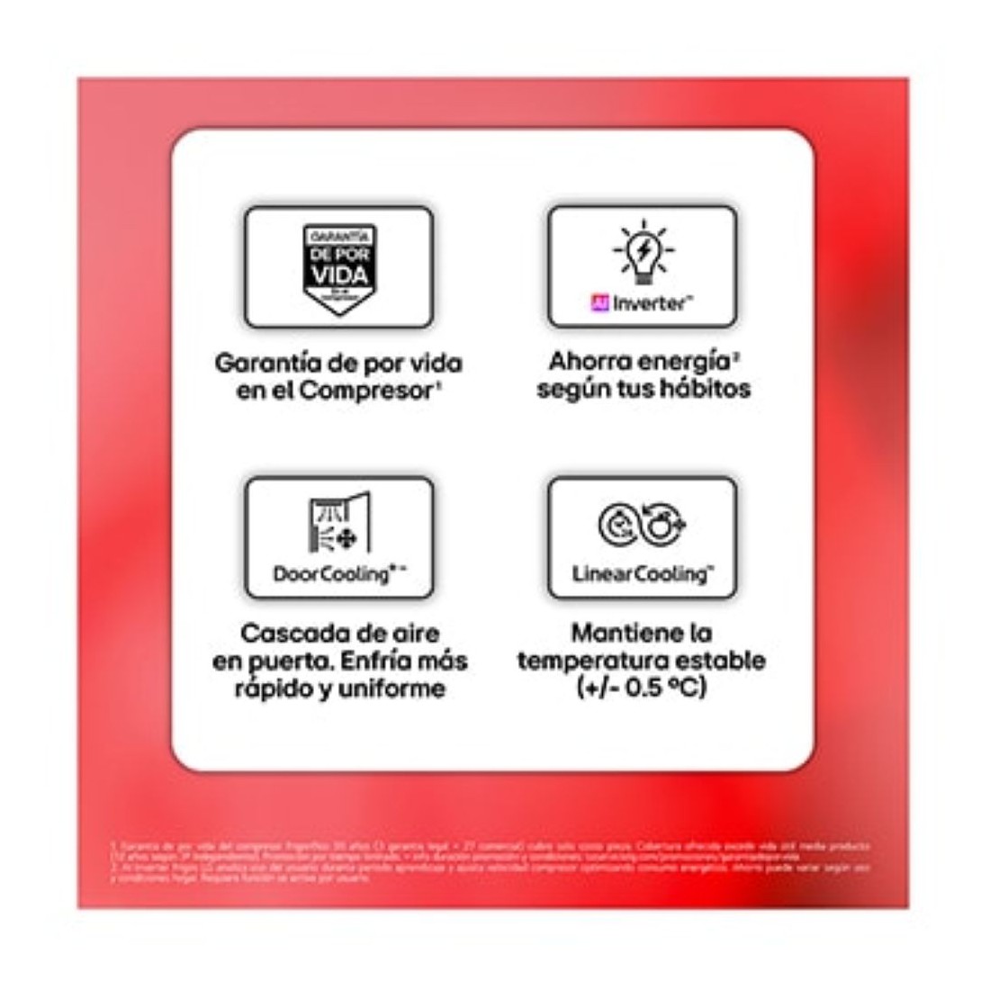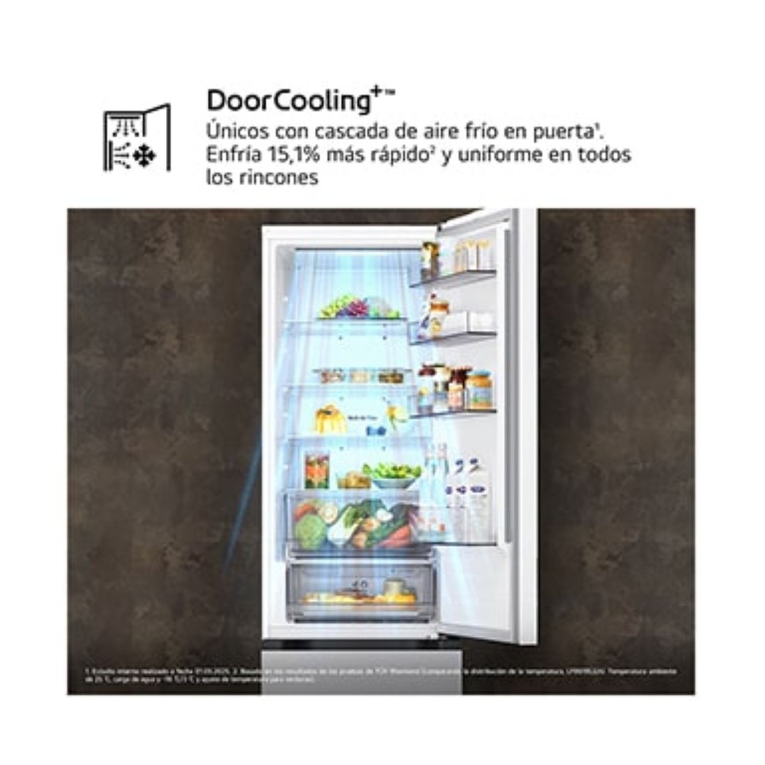 Gracias al sistema Door Cooling+™, el aire frío se distribuye de manera homogénea, logrando que los alimentos se enfríen hasta un 15% más rápido. Esto evita zonas calientes y garantiza una temperatura estable en todo el interior, ideal para conservar la frescura desde el primer momento.