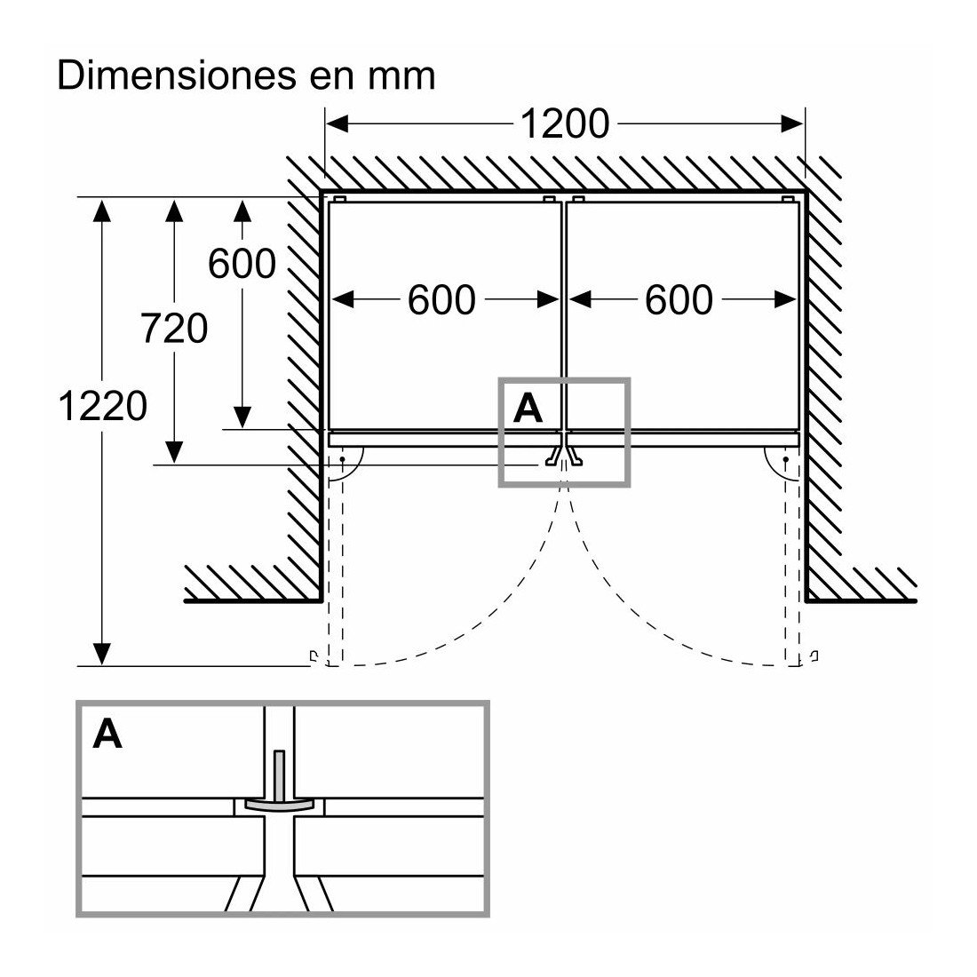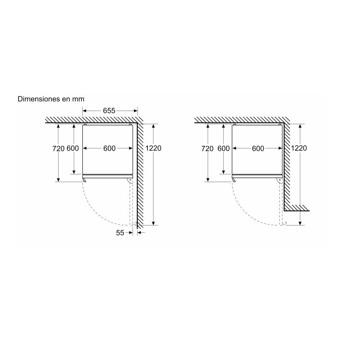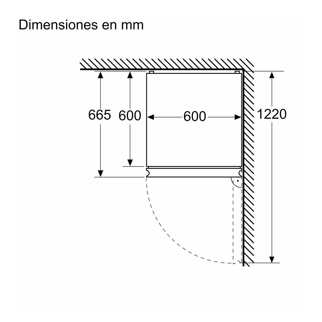 Altura: 2030 mm | Anchura: 600 mm | Profundidad: 665 mm | Profundidad con puerta abierta: 1220 mm