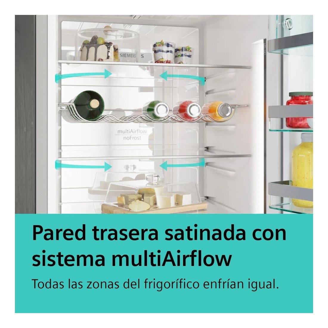 Gracias al sistema multiAirflow, el aire frío se distribuye de forma uniforme por todo el frigorífico. Esto evita que haya zonas más frías o calientes, y permite que los productos recién introducidos se enfríen rápidamente sin afectar a los que ya están almacenados. Es ideal para mantener la frescura de frutas, verduras y lácteos.