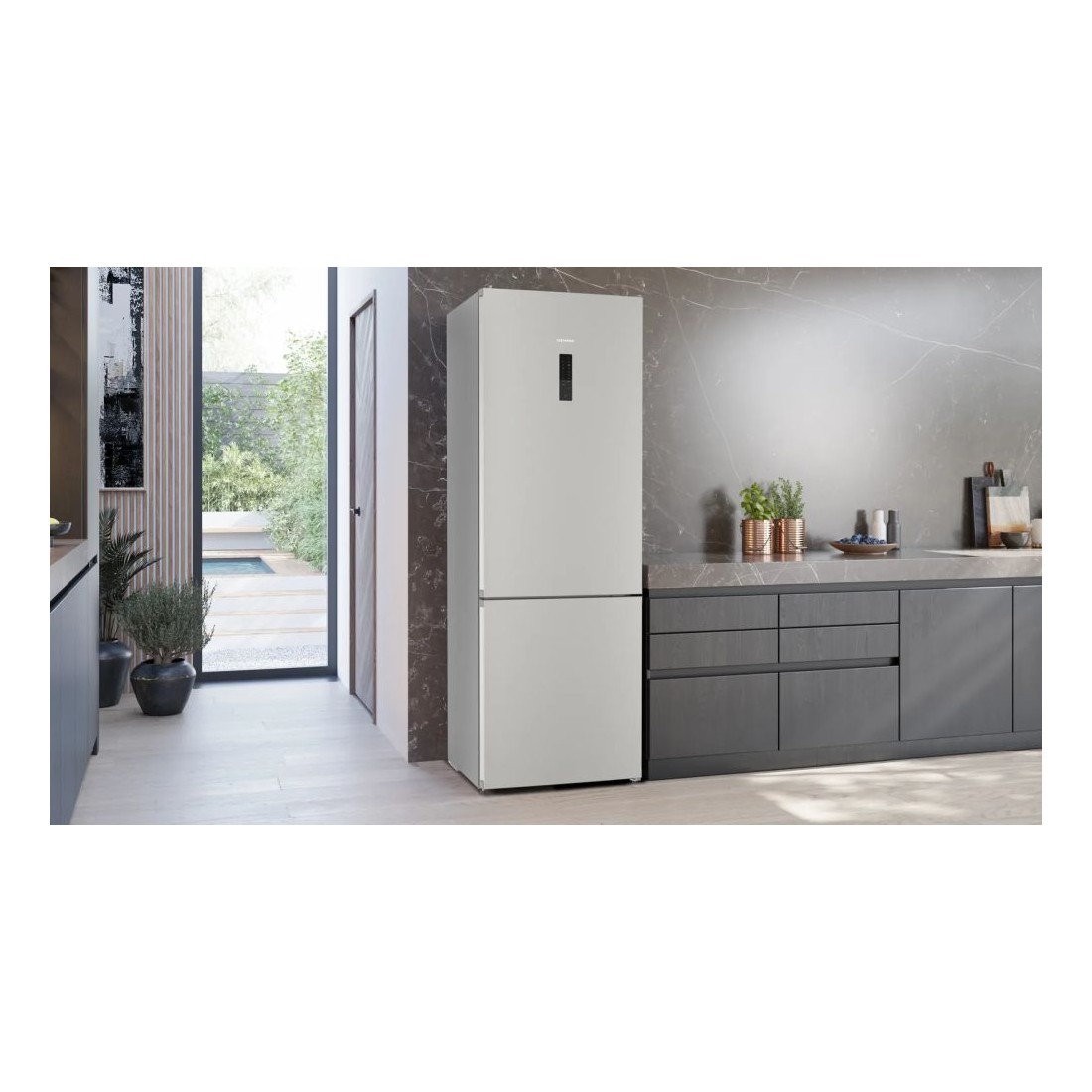 Este frigorífico combi de Siemens destaca por su acabado en acero inoxidable con tratamiento anti-huellas, ideal para mantener una estética impecable sin esfuerzo. Su diseño independiente y puertas reversibles permiten una instalación flexible, adaptándose a cocinas de distintos estilos y tamaños. La pantalla LED integrada con control táctil aporta un toque contemporáneo y facilita el manejo diario del aparato, incluso para quienes no están familiarizados con este tipo de tecnología.