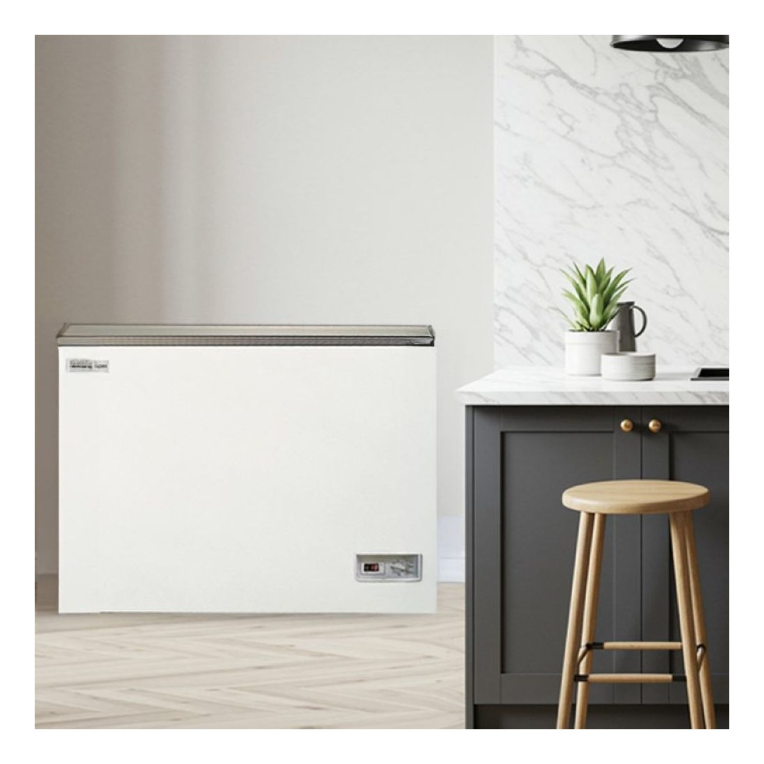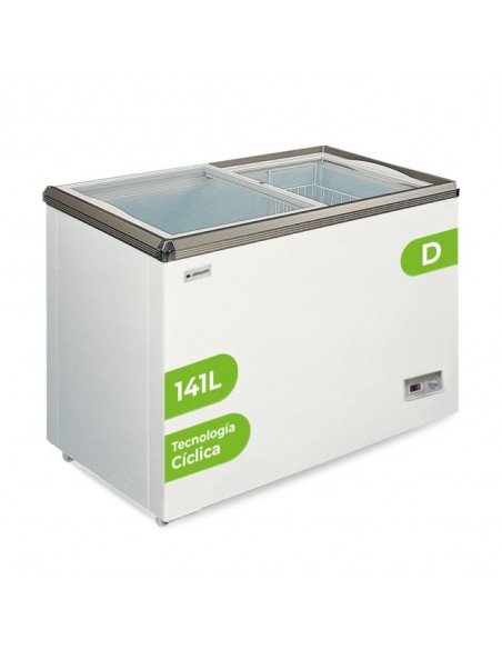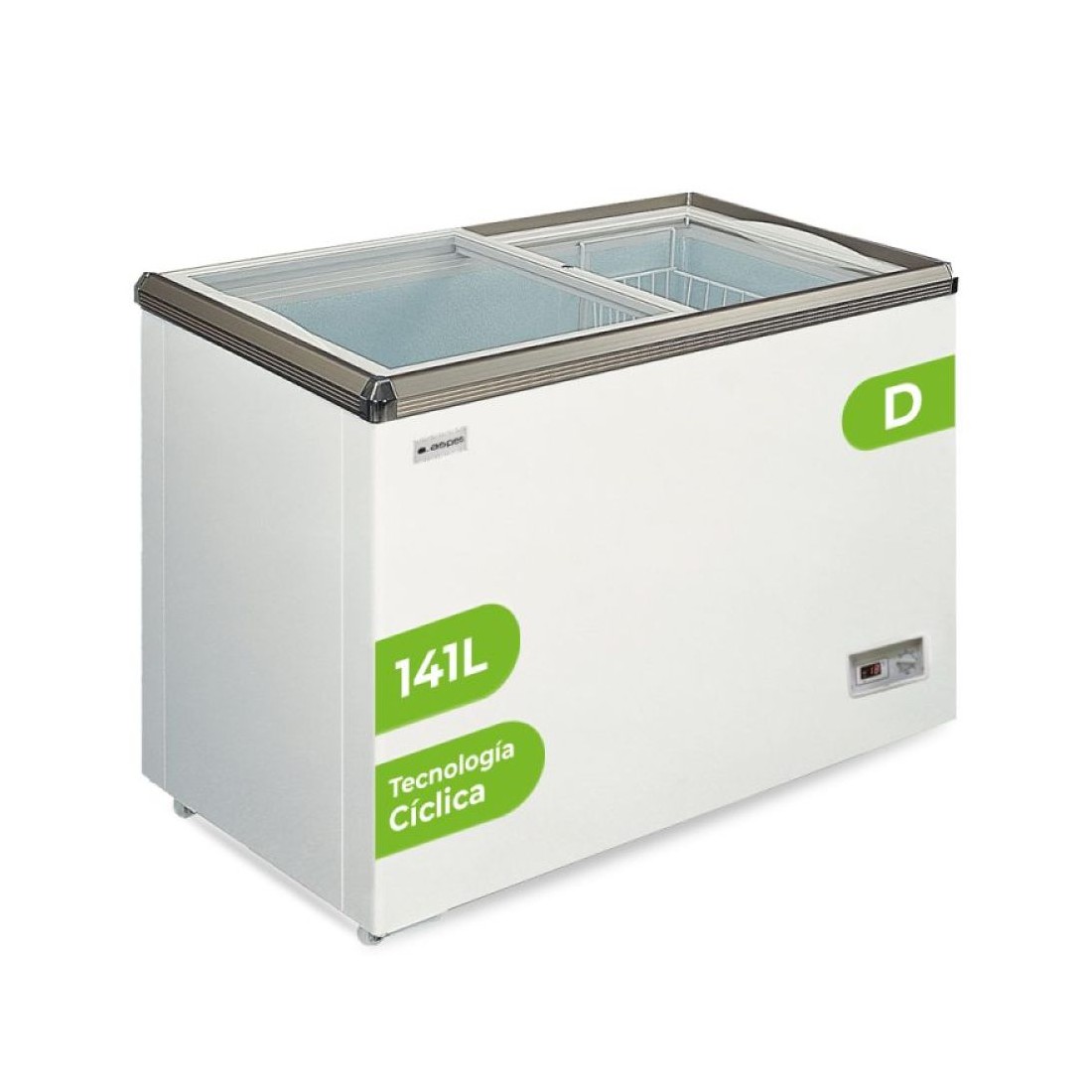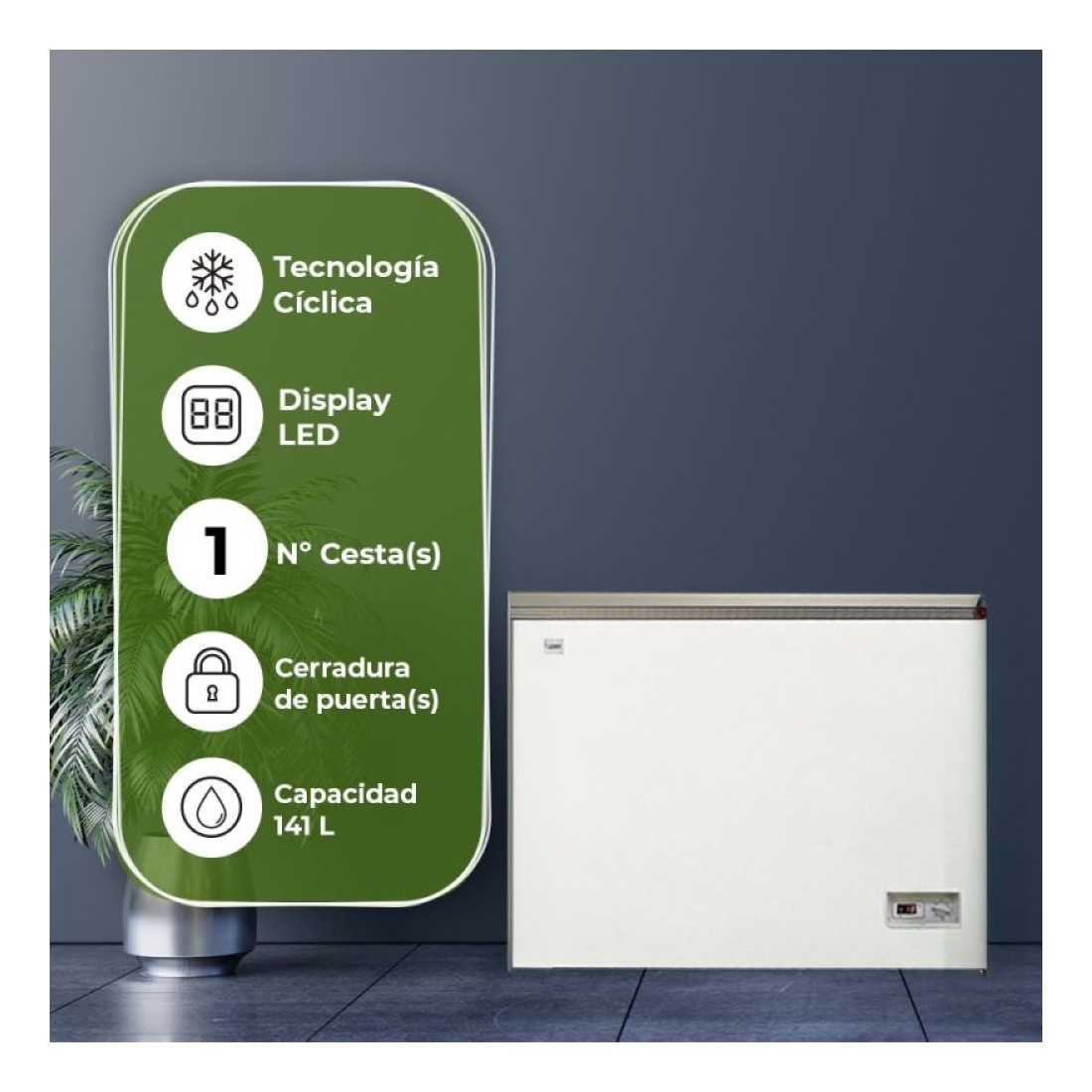Este congelador horizontal ofrece 141 litros de espacio útil, ideal para almacenar todo tipo de alimentos sin ocupar demasiado sitio. Su diseño independiente en color blanco se adapta perfectamente a cualquier ambiente, aportando funcionalidad y estética.