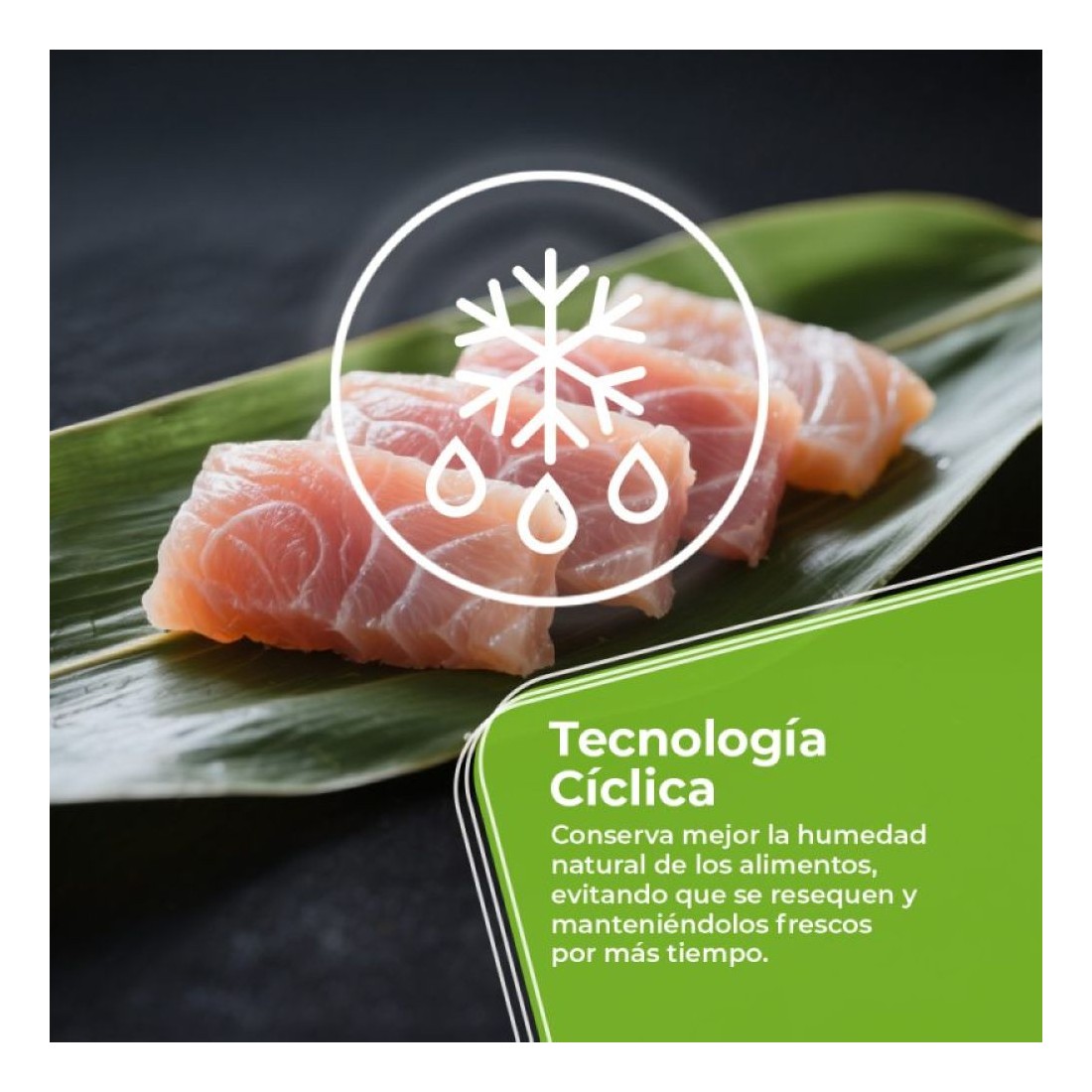 Olvídate de la escarcha y el hielo gracias al sistema No Frost, que mantiene una temperatura uniforme y evita la formación de hielo en el interior. Esto significa menos mantenimiento y una mejor conservación de los alimentos.