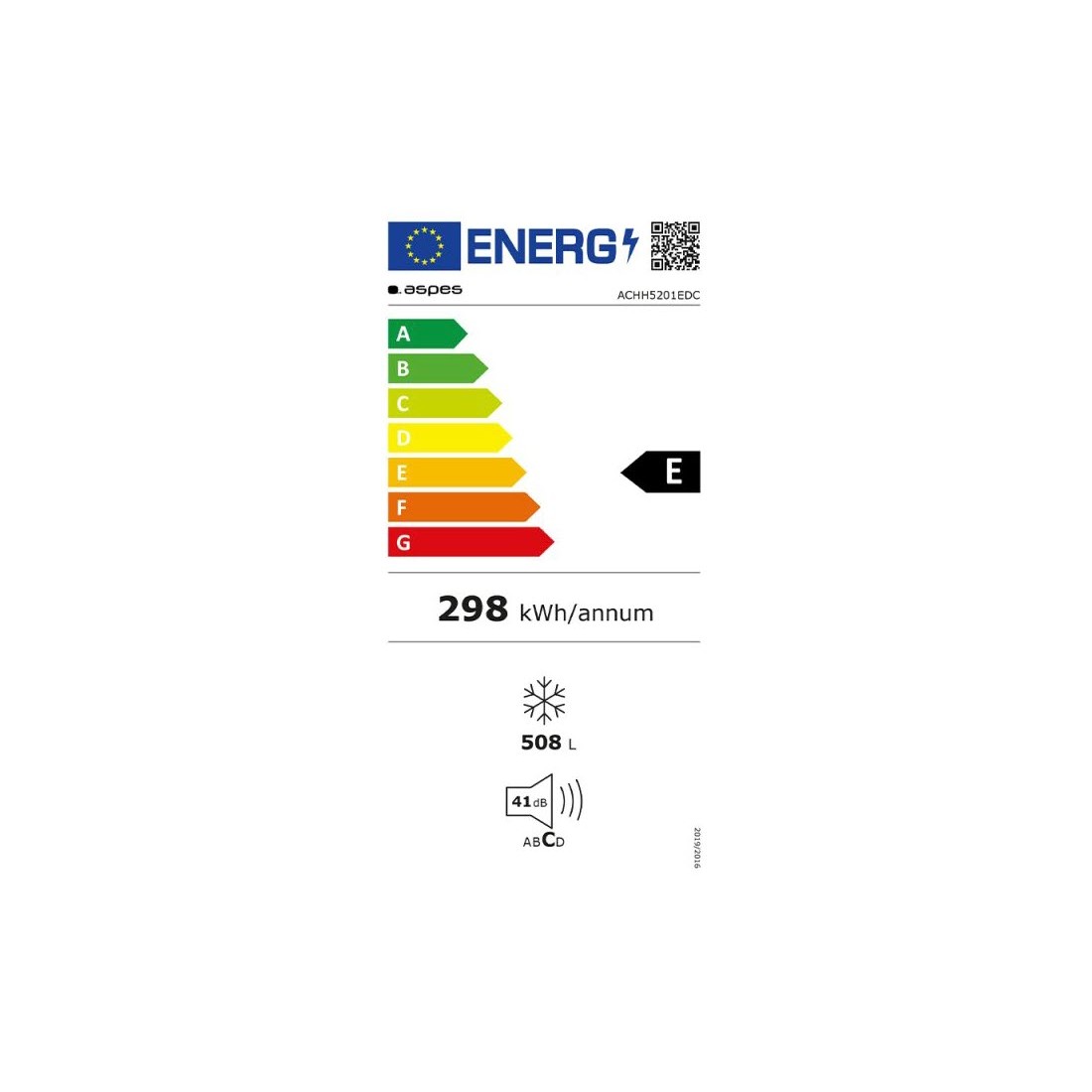 Con clasificación energética E y un consumo anual de 298 kWh, este arcón combina ahorro y rendimiento. Su nivel sonoro de 41 dB lo convierte en un electrodoméstico silencioso, ideal para cualquier entorno.