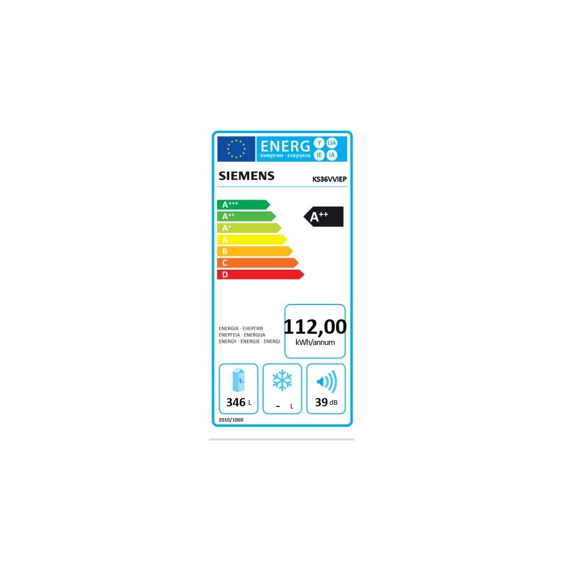 Conservador Libre Instalación - Siemens KS36VVIEP, Eficiencia A++, Inox, Sin dispensador, Cíclico
