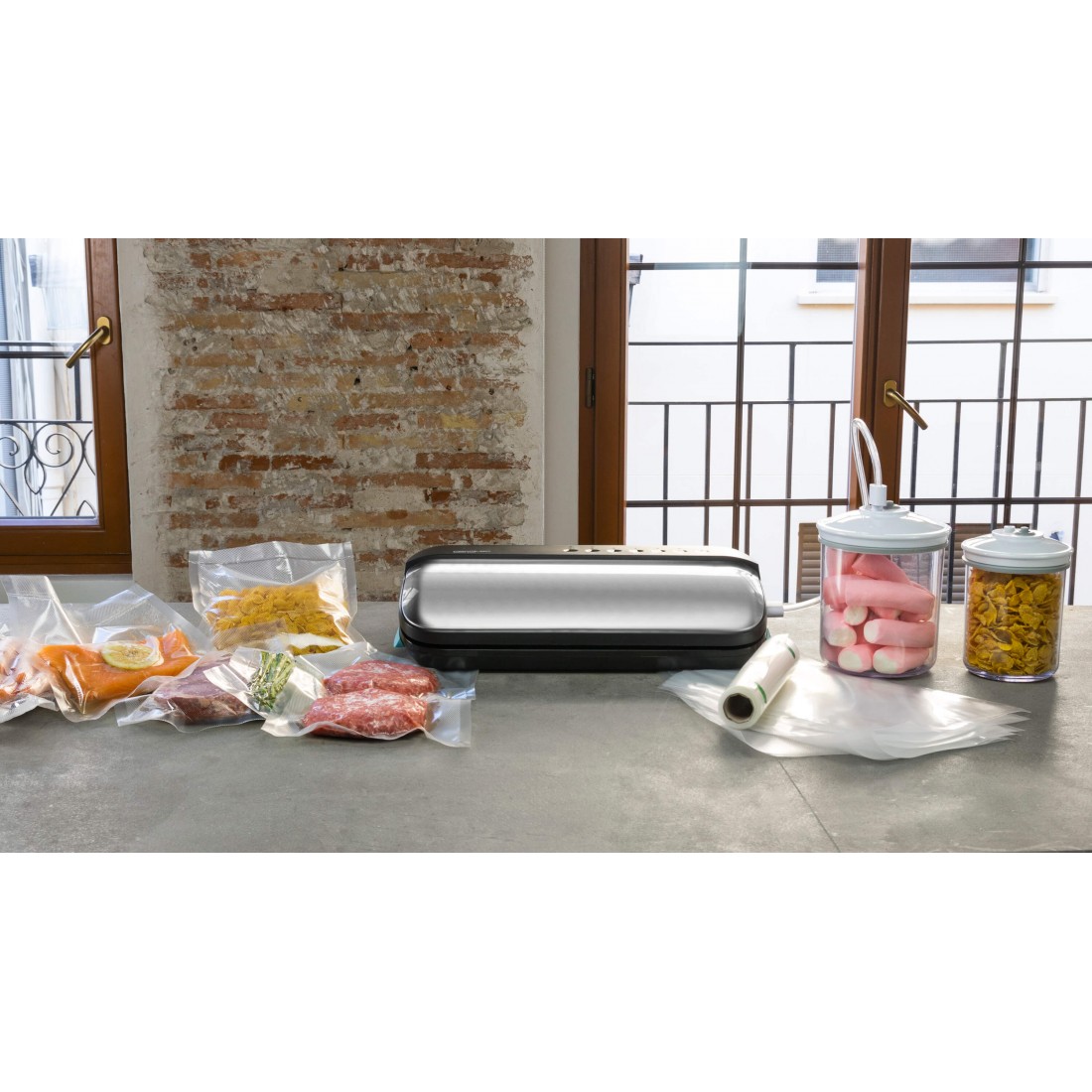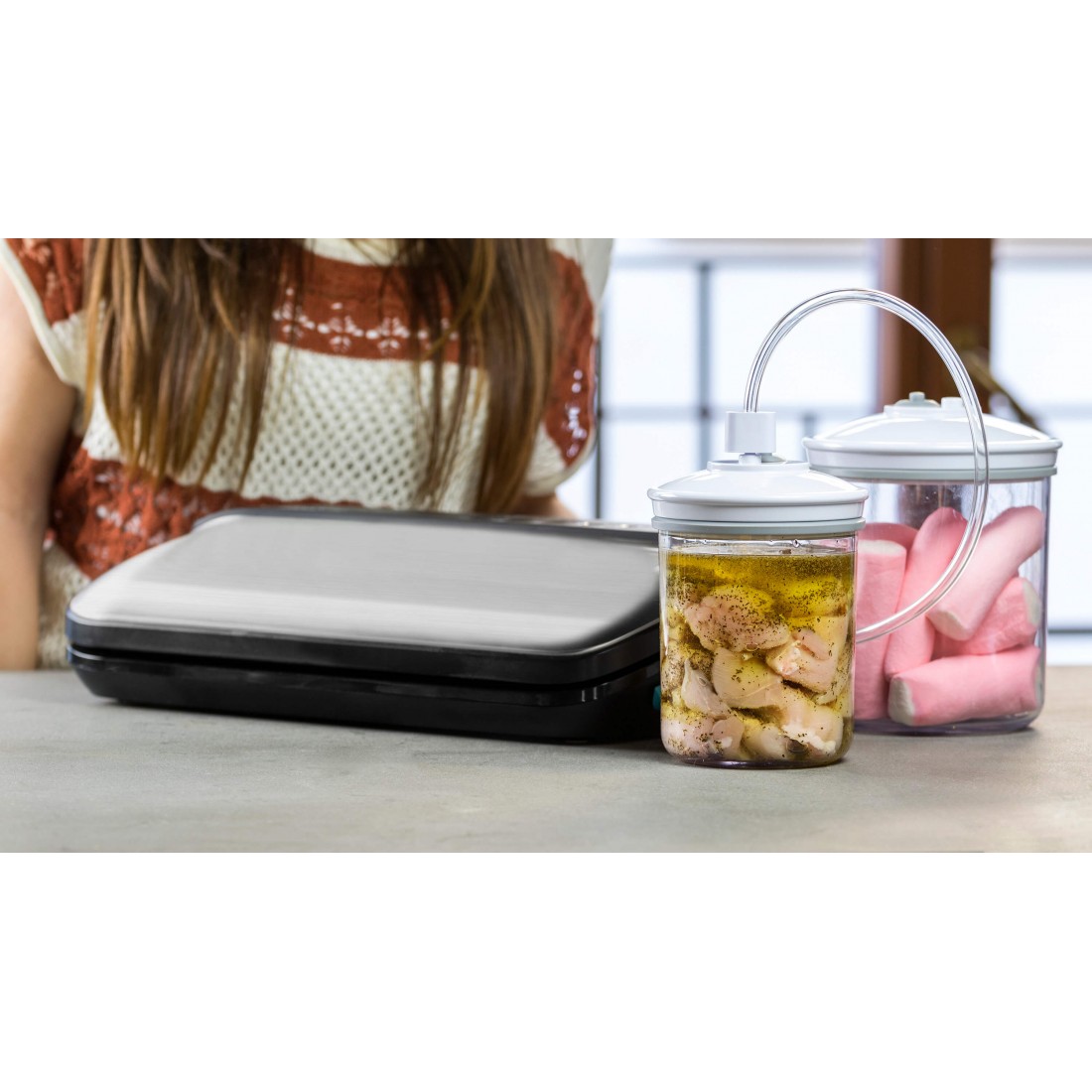 Sealvac Steel acepta botes de vacío, bolsas con cierre hermético, tapones para botellas y múltiples accesorios que harán que envasar todos tus alimentos sea mucho más fácil.