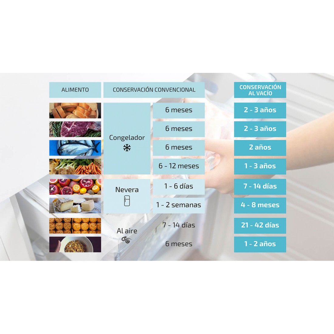 ALIMENTOS 5 VECES MÁS FRESCOS QUE SIN ENVASAR