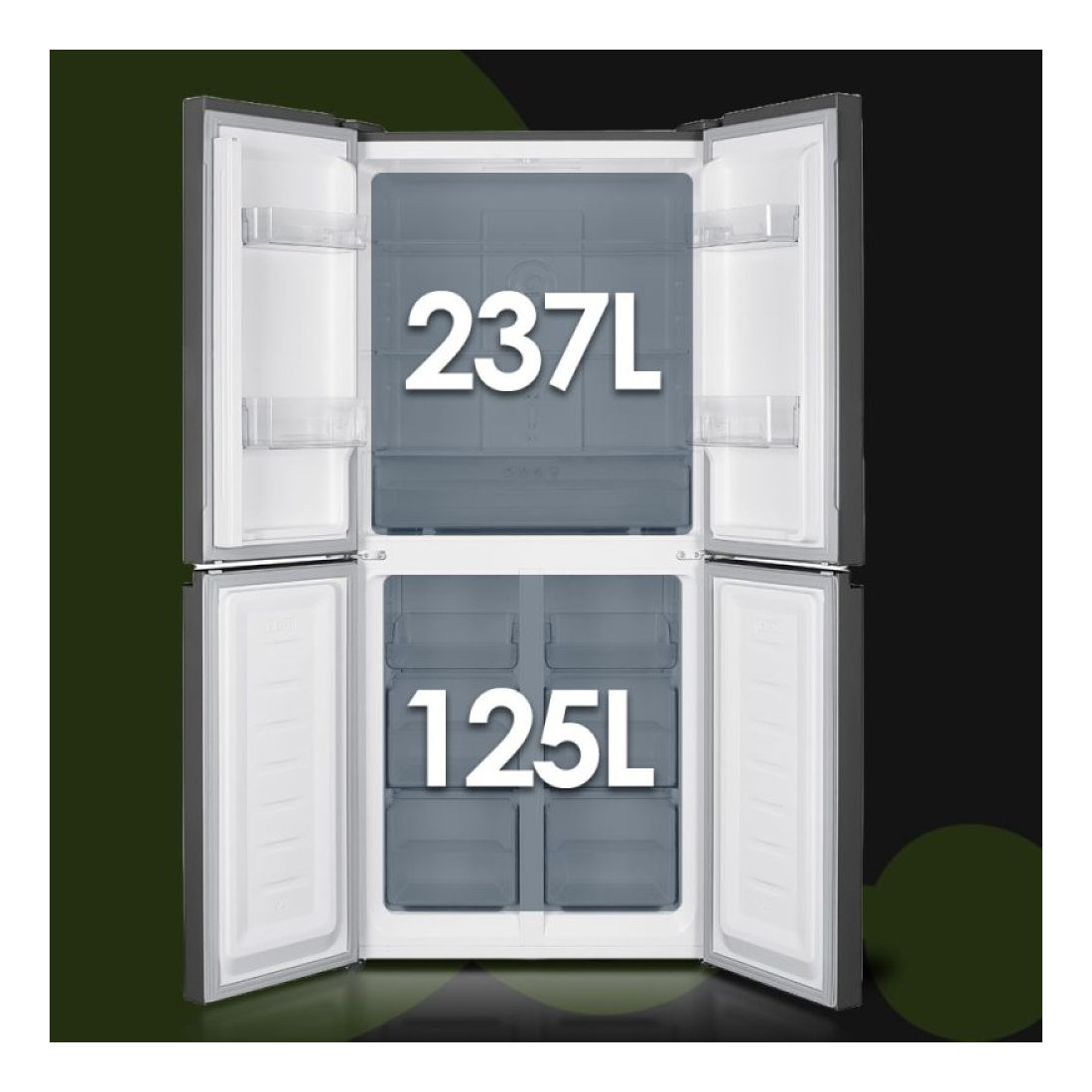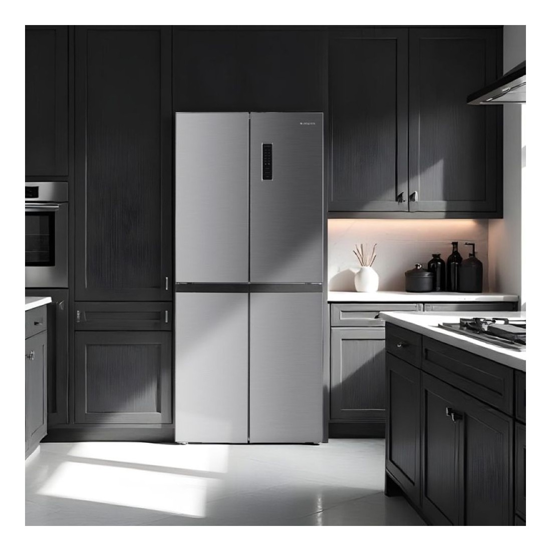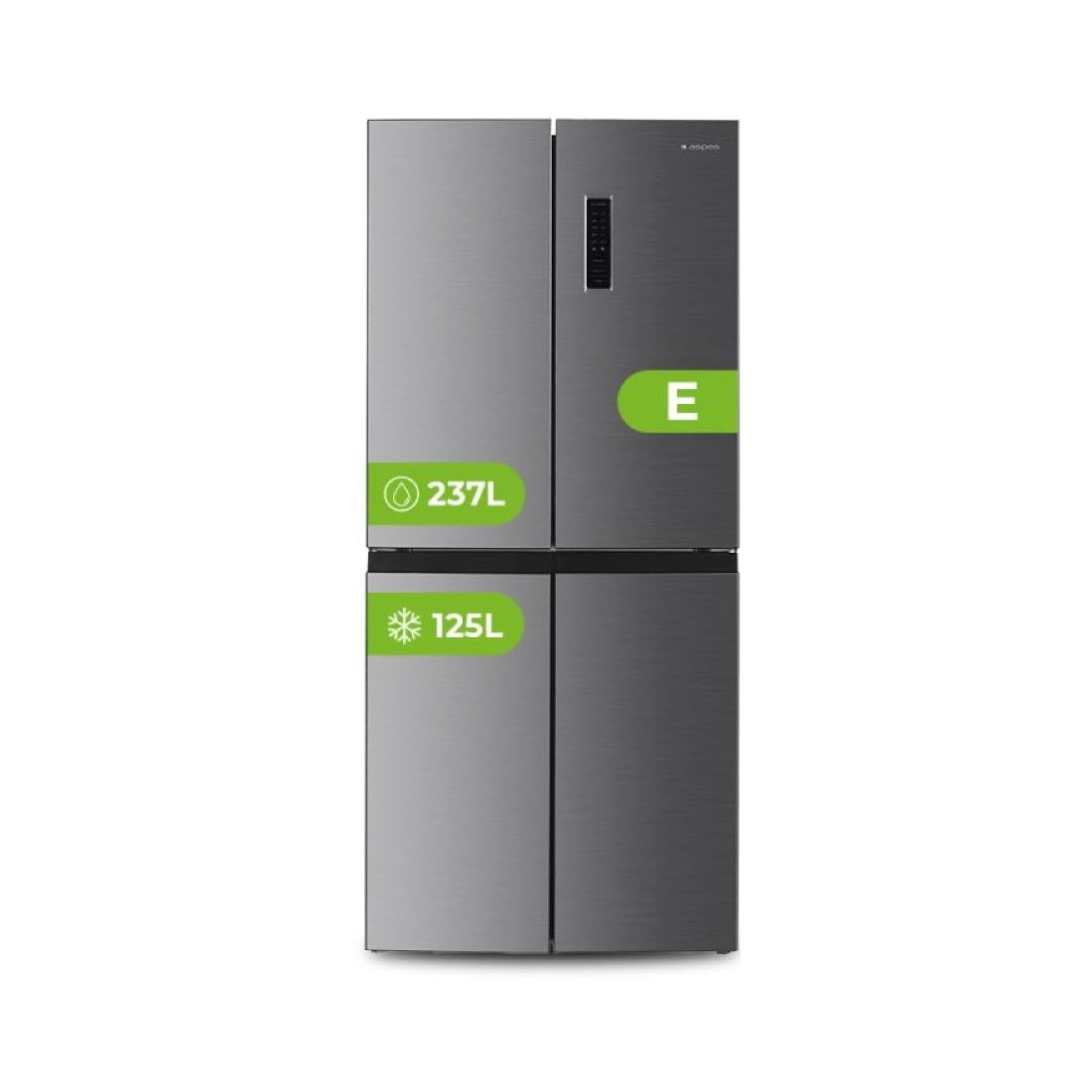 Este frigorífico americano de 4 puertas ofrece una capacidad total de 362 litros, ideal para familias que necesitan espacio extra. Su acabado en acero inoxidable y tiradores empotrados aportan un toque sofisticado y moderno a tu cocina, mientras que su diseño de puertas múltiples facilita la organización de los alimentos.