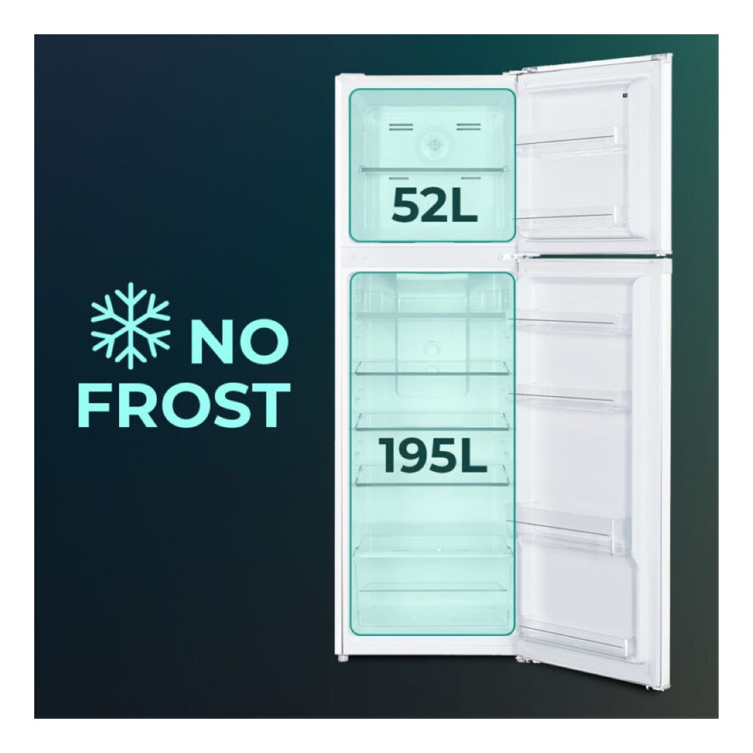 Con una capacidad total de 247 litros, tendrás espacio suficiente para organizar tus alimentos. El congelador cuenta con clasificación de 4 estrellas, ideal para conservar productos durante más tiempo sin perder calidad.