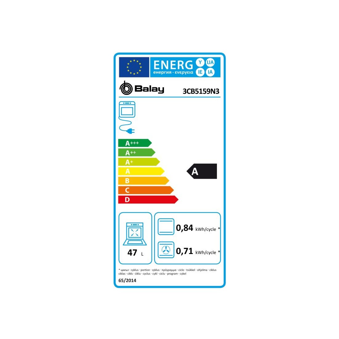 Horno 45 cm - BALAY 3CB5159N3, Cristal Negro, Aquálisis