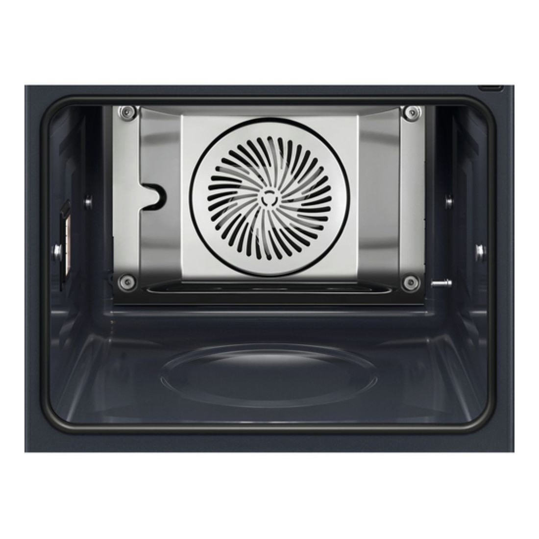 Horno integrado de diseño elegante en cristal negro con detalles inox, ideal para cualquier cocina moderna. Su tecnología de cocción combinada con vapor permite una cocción uniforme que conserva el sabor y la textura de los alimentos. Con capacidad de 70 litros, ofrece espacio suficiente para cocinar platos grandes o varias preparaciones al mismo tiempo, siendo perfecto para familias o amantes de la cocina.