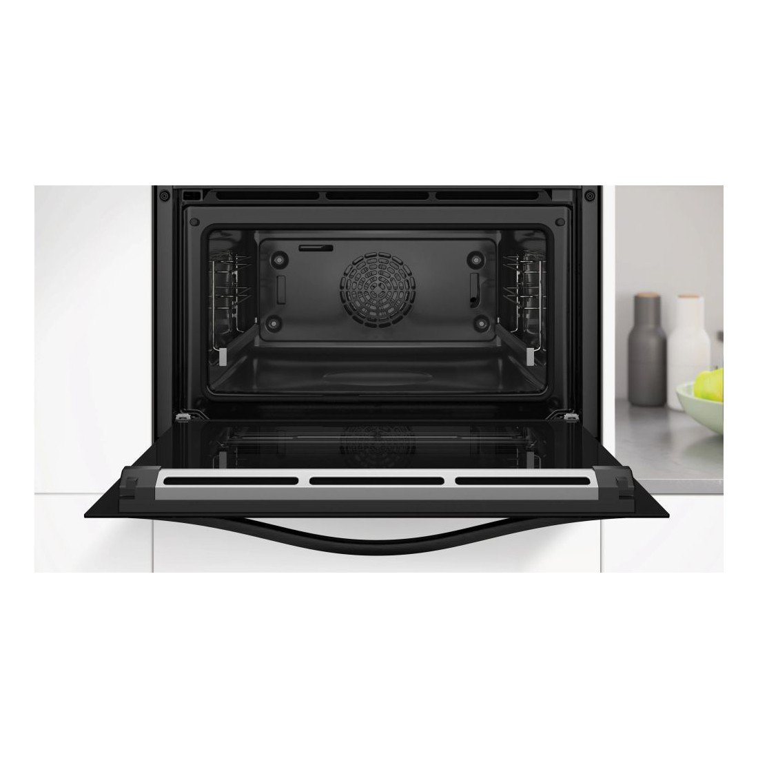 Este horno eléctrico de 45 cm de altura combina un acabado en acero inoxidable y negro con una estética elegante y atemporal. Su diseño compacto lo convierte en una opción ideal para cocinas con espacio limitado, sin renunciar a prestaciones avanzadas. La puerta extraíble y el control táctil deslizante aportan comodidad y estilo.