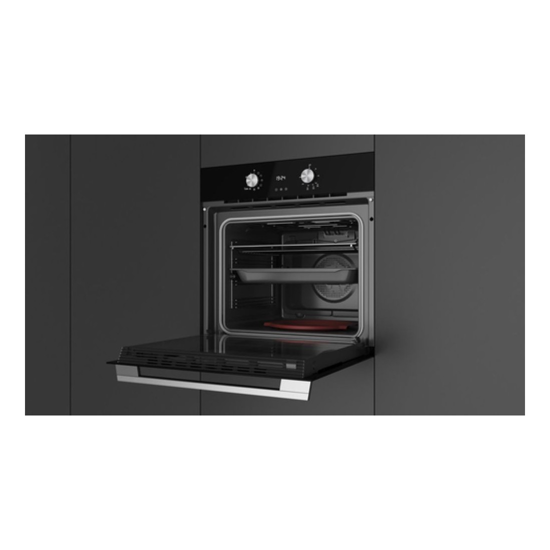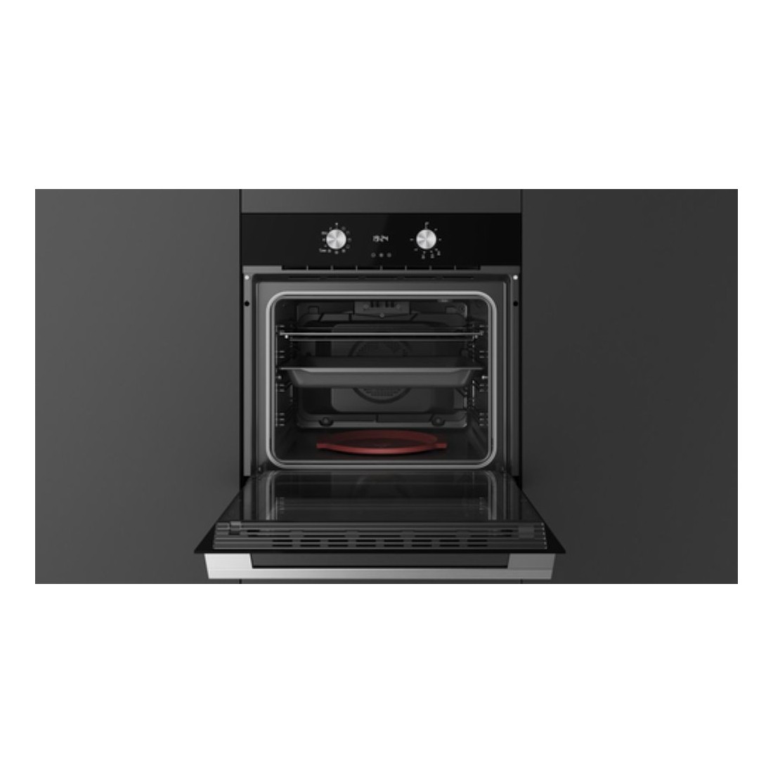 Este horno empotrable combina un elegante cristal negro con tecnología avanzada para ofrecer una experiencia culinaria completa. Con una capacidad de 70 litros, 9 funciones de cocción y sistema SurroundTemp, garantiza resultados uniformes y profesionales en todo tipo de recetas.