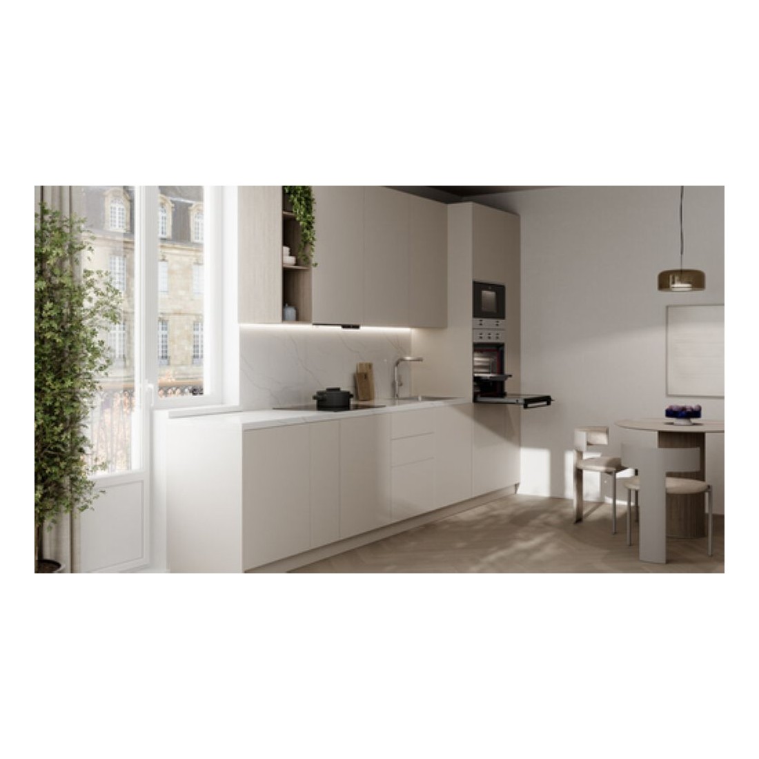 Con 5 niveles de estantes, soporte cromado y guías telescópicas Plus Extension, este horno está diseñado para facilitar la colocación y retirada de alimentos. La bandeja profunda antivuelco añade seguridad, ideal para platos grandes.