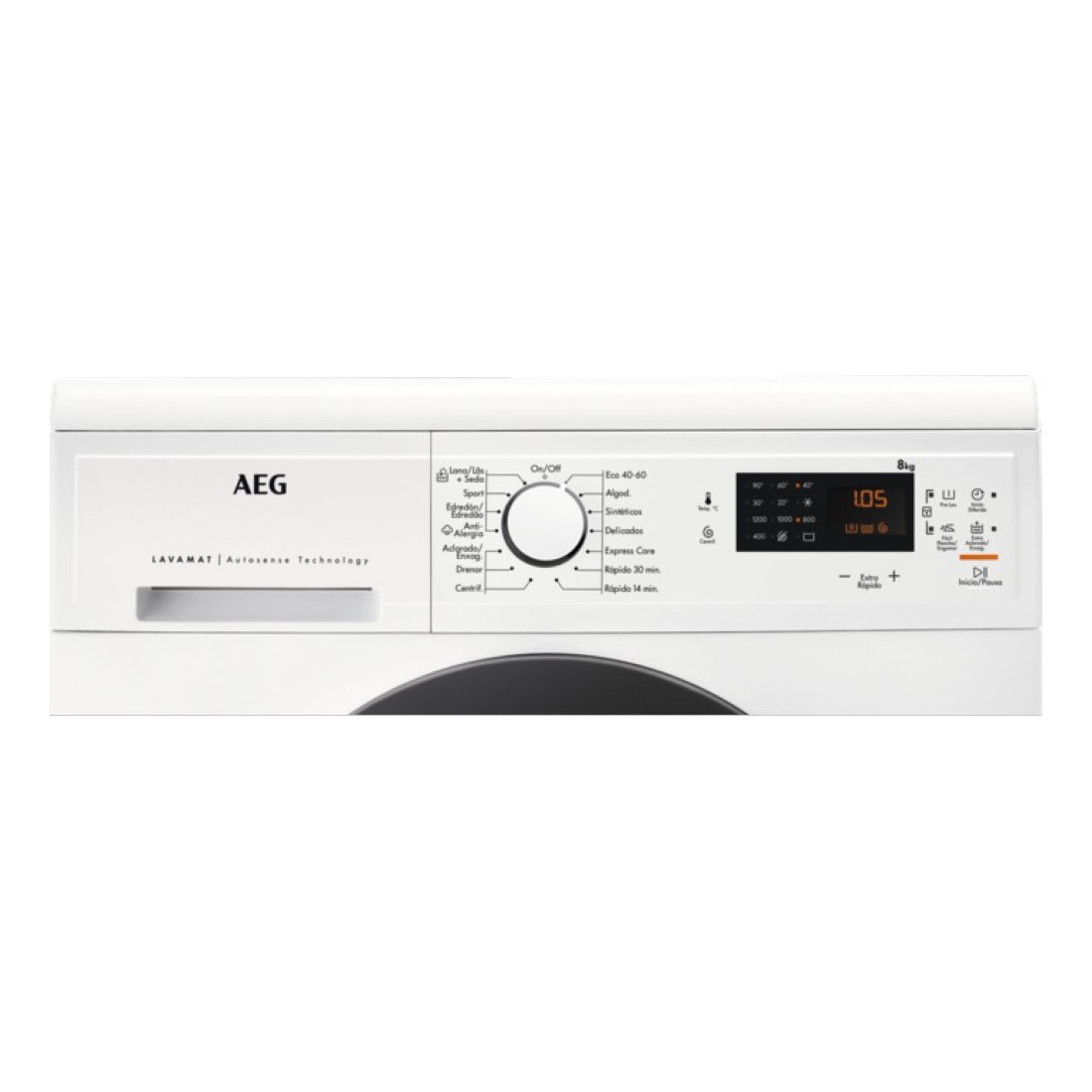 Esta lavadora blanca de carga frontal te ofrece una capacidad de 8 kg, ideal para familias o quienes lavan grandes volúmenes de ropa. Su pantalla integrada y el control giratorio permiten seleccionar fácilmente entre sus múltiples programas, incluyendo ciclos rápidos, delicados y específicos para higiene o deporte.