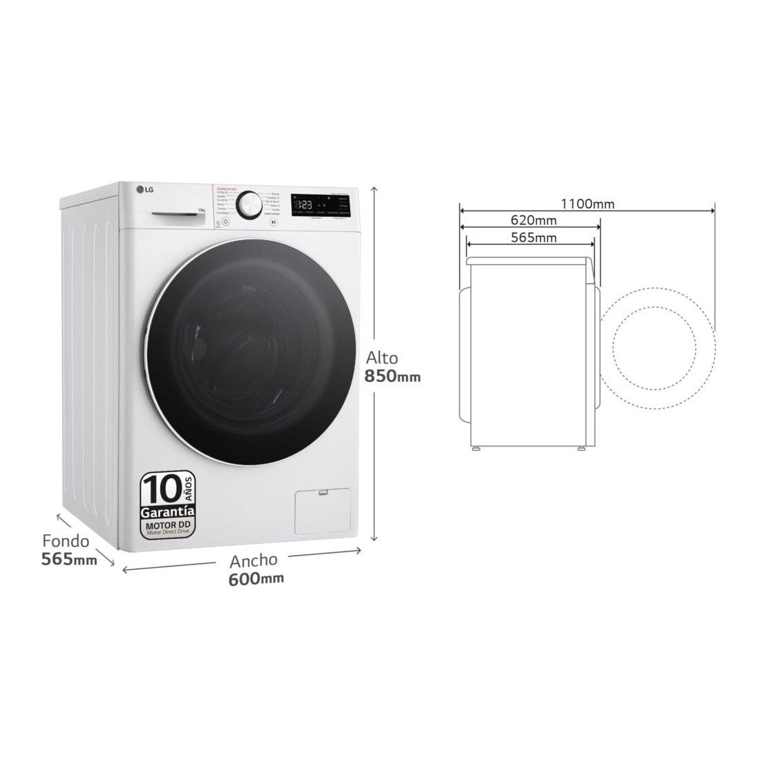 Lavadora Libre Instalación - LG F4WR6010A0W, Blanco, 10 Kg, 1400 rpm, Eficiencia A