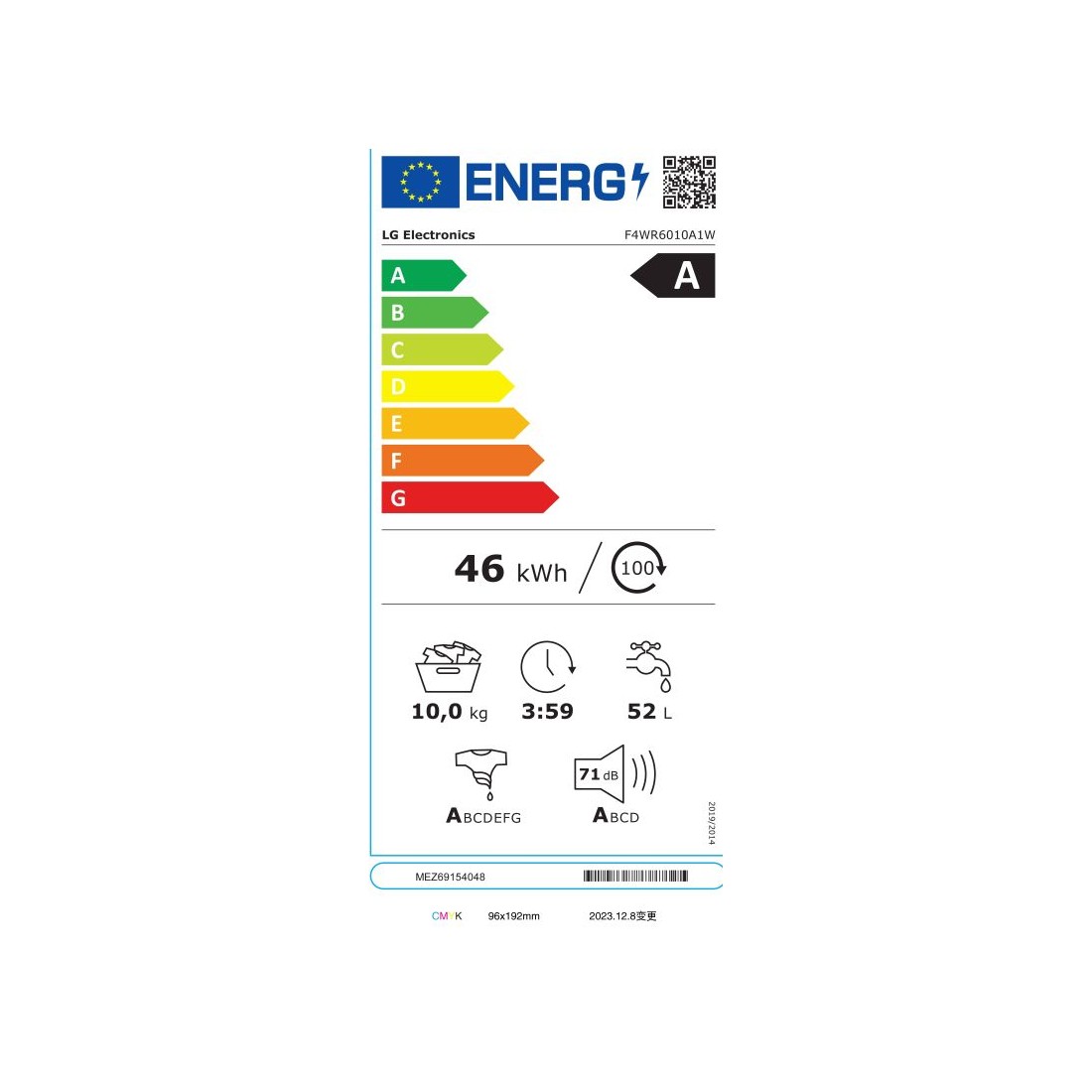 Lavadora Libre Instalación - LG F4WR6010A1W, Blanco, 10 Kg, 1400 rpm, Eficiencia A