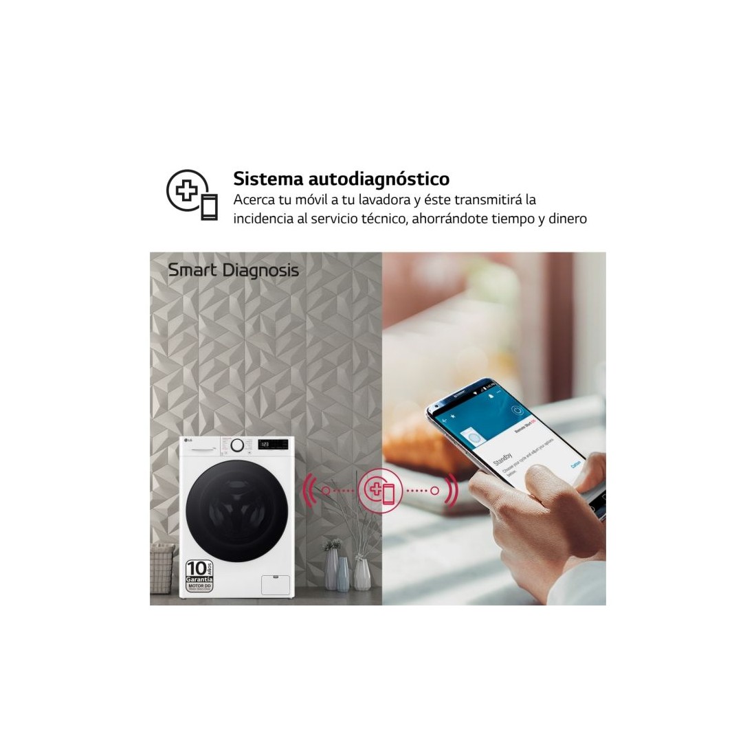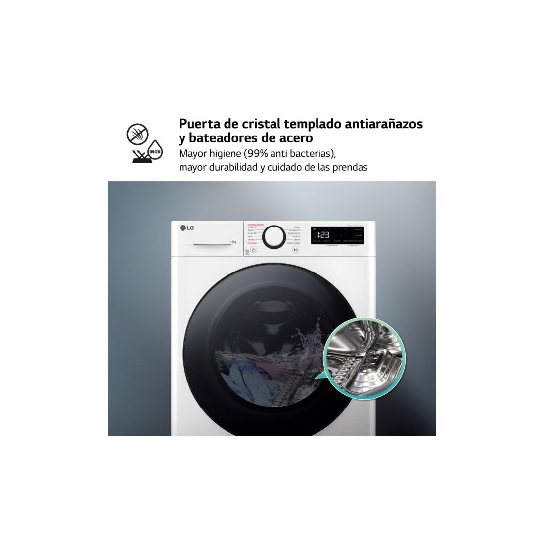 Lavadora Libre Instalación - LG F4WR6013AGW, Blanco,13 kg, Eficiencia A, 1400 rpm