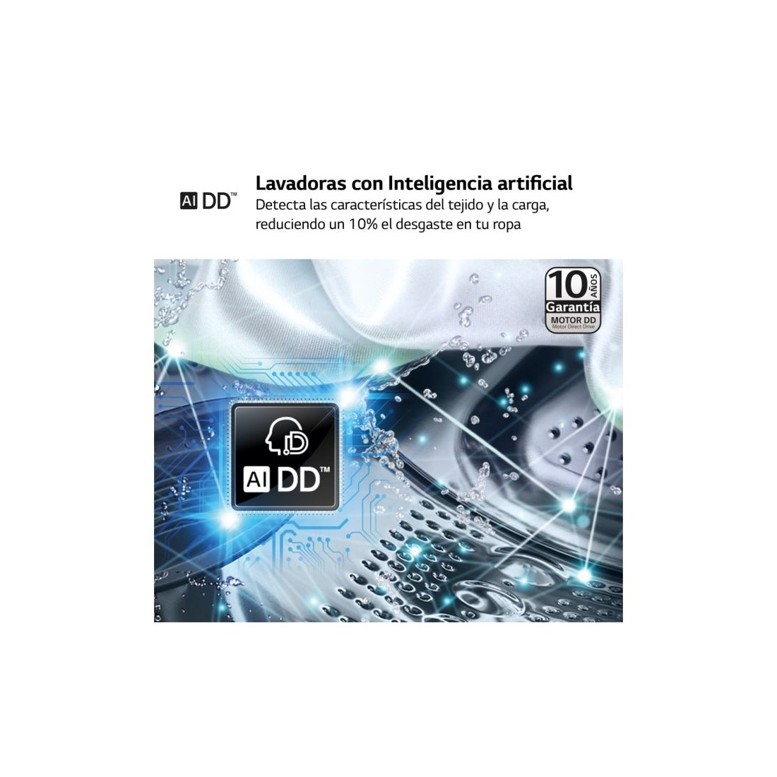 Esta lavadora blanca de carga frontal incorpora tecnología AI DD™, que detecta el tipo de tejido y ajusta el movimiento del tambor para proteger cada prenda. Es como tener un lavado personalizado en cada colada, ideal para quienes valoran el cuidado de su ropa. Además, su motor Inverter Direct Drive garantiza un funcionamiento silencioso y duradero.
